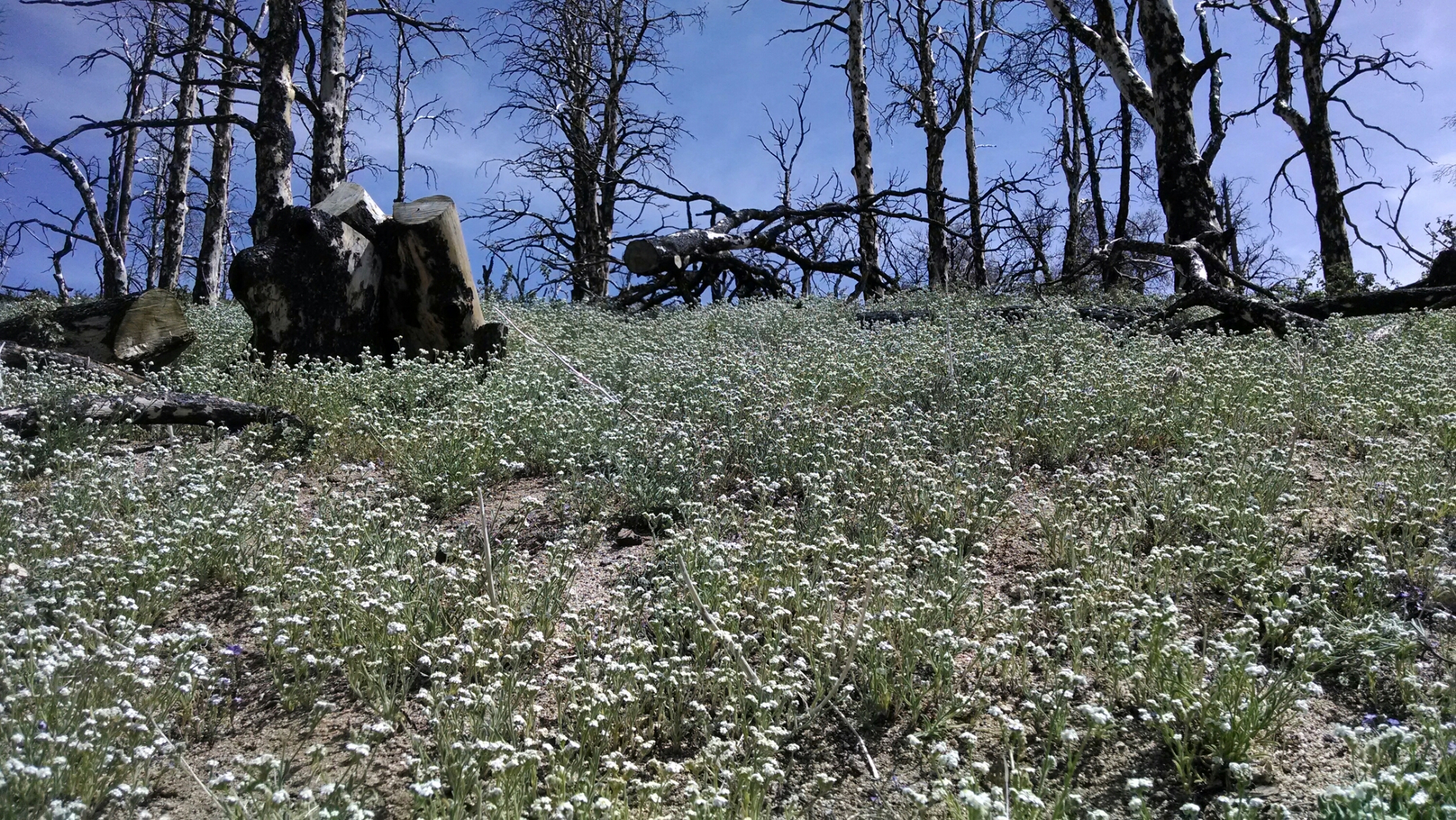The trail took us through sadly another burn area. This burn area was different from others we have been through as the flowers were in full bloom and in some parts the aroma was sweet like that of gardenias. The beauty and contrast was like something out of a Salvador Dali inspired landscape. This half of the trail was well worth the “yuk” of the up.