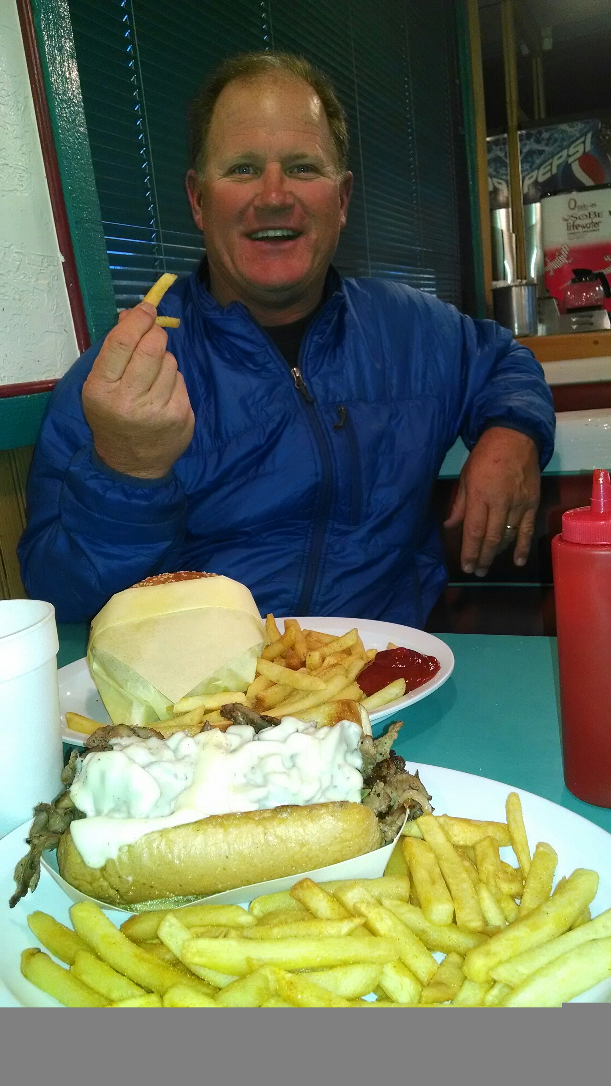 We were happily surprised when a small sedan passed us in the opposite direction u-turned and took us into Mojave and our hotel. Bill, the driver was a civilian at Edwards A.F. base. He was not only gracious but full of great historic knowledge which we all later mentioned how interesting he was. After checking in to the “five star” Motel 6 we went across the street to eat at Primo Burger.