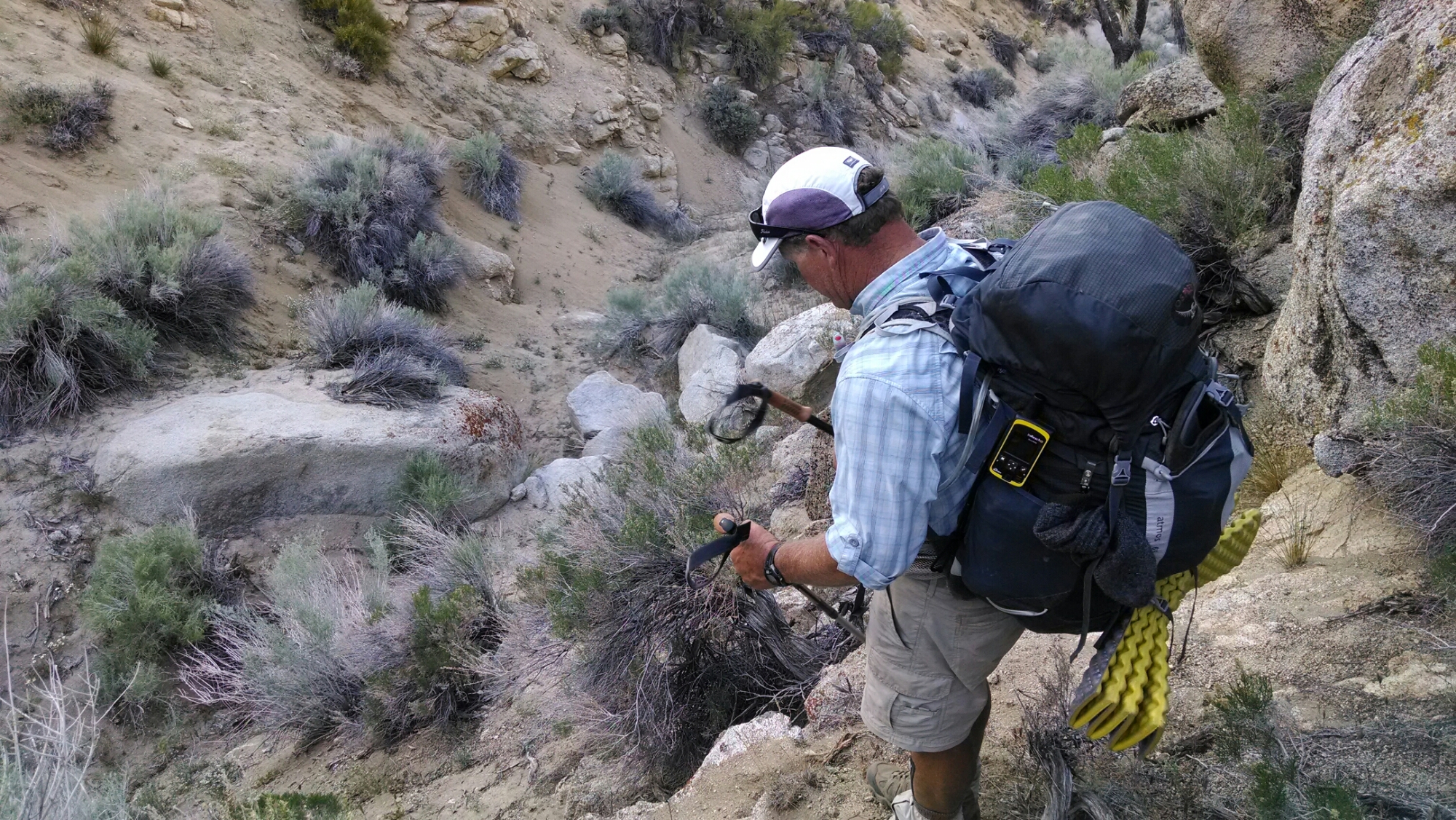 Cache is empty but for half a liter. No biggie, we’re good and hadn’t planned on it. However if there had been water there we would have taken 2 liters and bypassed Willow Spring. It is now, however super hot with no shade to speak of. We sit out an hour and eat lunch. 4 miles plus another 1.9 of the Willow Spring alternate…easy peasy. Lugnut #3: 4 miles uphill in soft sand when it’s 85 degrees is NOT easy peasy. We drink water freely and embrace the breeze that cools our sweat soaked bodies.
