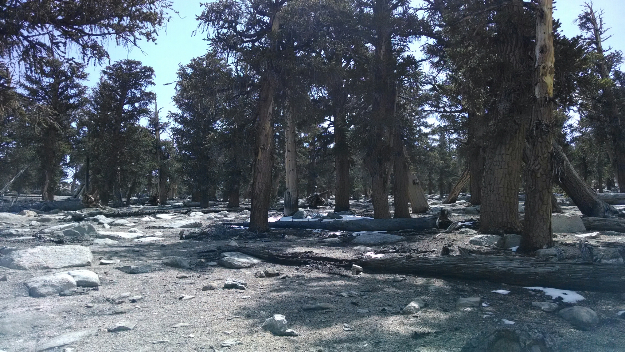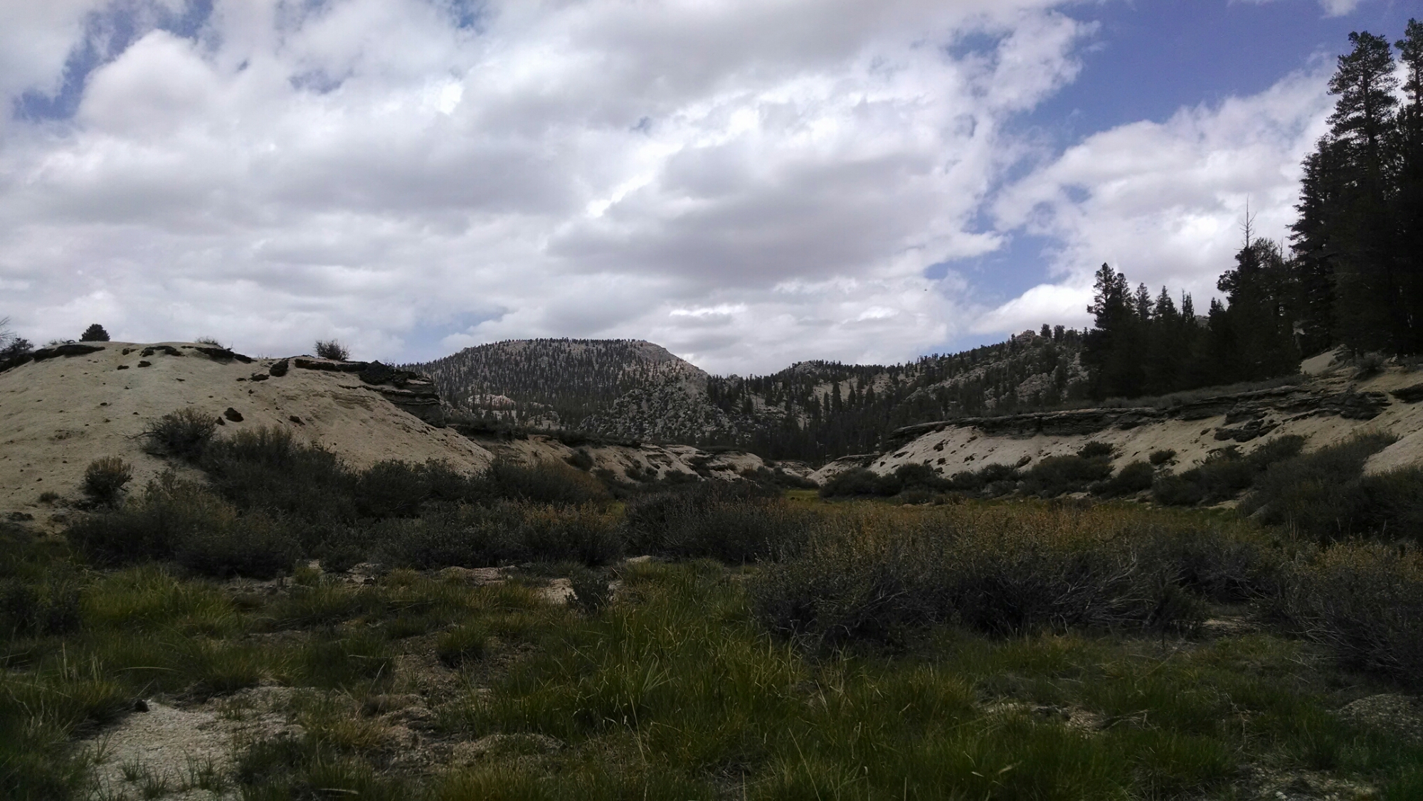 We stop at Diaz meadow creek (mile 741) for water and lunch and reconfirm which trail we will take to Horseshoe Meadow for a hitch into Lone Pine.  We decide on the Horseshoe Meadow/Mulkey Meadow trail as it’s only 2.9 miles and thus makes it an 18+ mile day and early enough to the road for a better chance at a hitch.  Once we start down the trail to Horseshoe Meadow we see three thru hikers we recognize from KM that had left a day or so ahead of us. They are coming back from Lone Pine and a resupply and are cagey about their snow experience, saying it wasn’t “that bad”, however their faces tell another story.  One says that everyone but Mammoth went into town…but then Mammoth is crazy and tough as nails.  We remarked that he probably asked, “When’s the weather gonna hit?”…in the thick of it.  The three agreed.  When we got to the bottom and were walking across the meadow floor we saw Indy and Art Gypsy.  They told us the real story, about the whiteout conditions, hunkering down for two days next to a raging fire with several other hikers and then taking the first exit out and into town for more food.  In classic form, Art Gypsy (who is a photographer by trade) smiles brightly, “But I got some great photos!”.  They give us the lowdown on getting to town and where to stay.  We wish them safe travels and make our way to the road.  We are prepared to spend the night at the campground, if we must, and try and yogi a ride out of there, but are happily surprised within about 20 minutes by a truck with three backpackers from Big Bear returning from a short trip and heading into town for dinner.