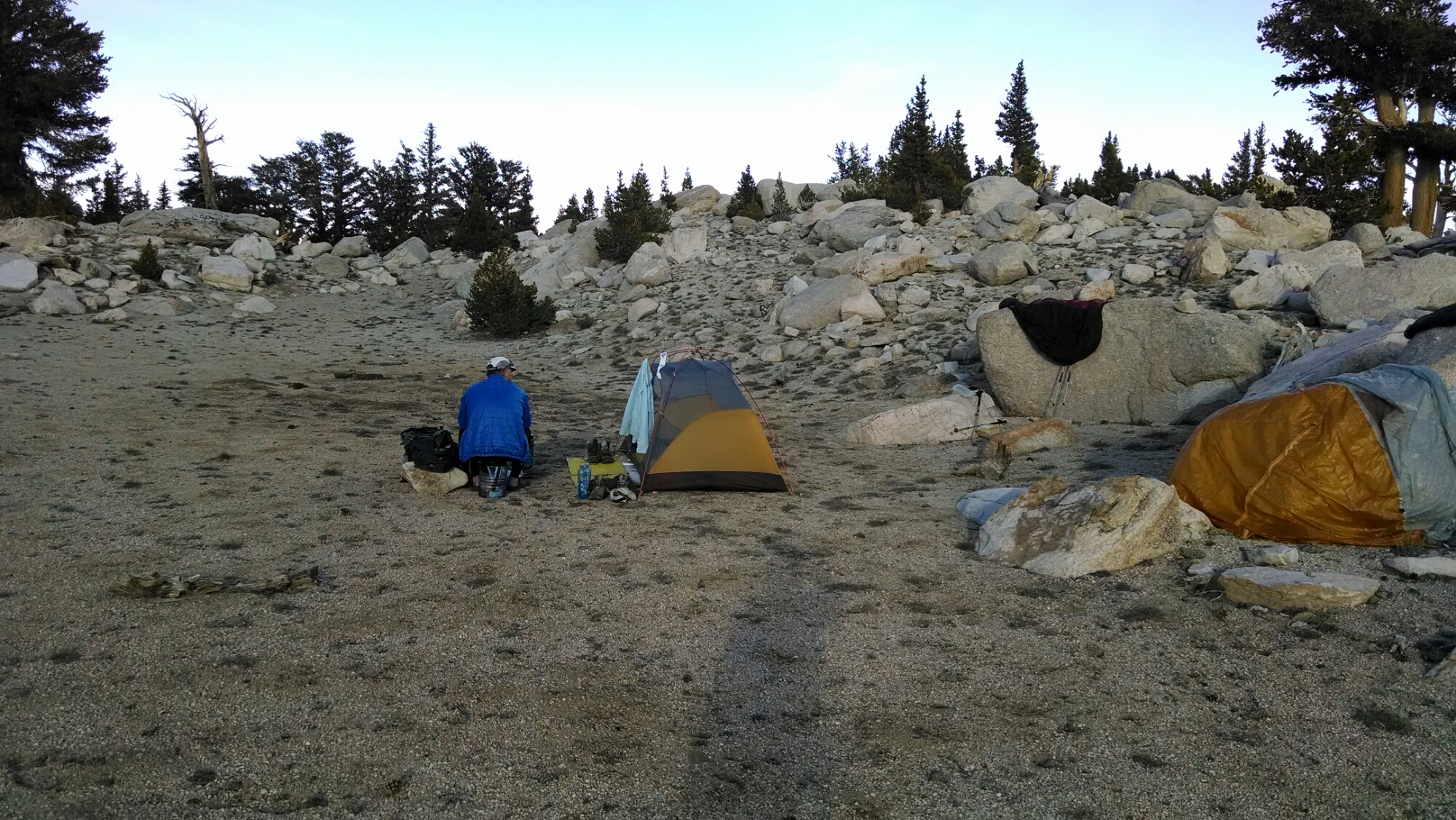 Not bad for a Nero as we leisurely set up camp in a sandy granite bowl, all to ourselves,  overlooking what we believe is Whitney Meadows (at least that’s what the trail sign that had pointed in that general direction said.). Okay. Fingers are frozen now. Time to go to bed.