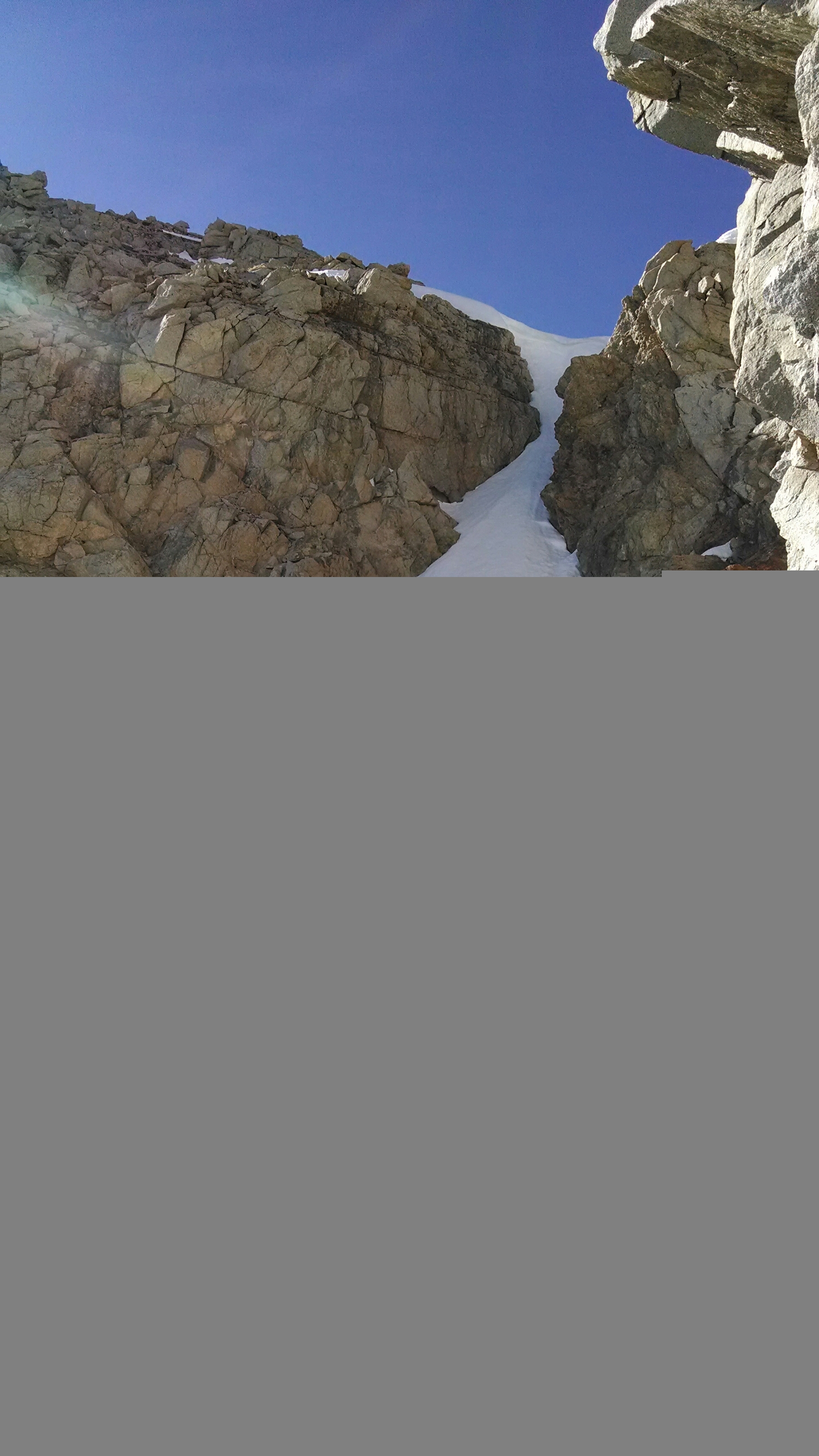 The switchbacks are steep and you gain altitude quickly. Before you know it, the valley floor is far below and the edge of the crumbly trail, is straight down. ‘Don’t look down’, I tell myself… focus on the trail. The other couple is just below us and shouts, “having fun yet?” ‘Of course’, we reply. We continue climbing and reach the “snow bridge”connecting both sides of the chute. Up to this point the height issues were livable but this looked real scary (more like terrifying) and A LOT crazy! I can’t believe I signed up for this. Paul is giddy and thinks it’s the coolest thing ever.