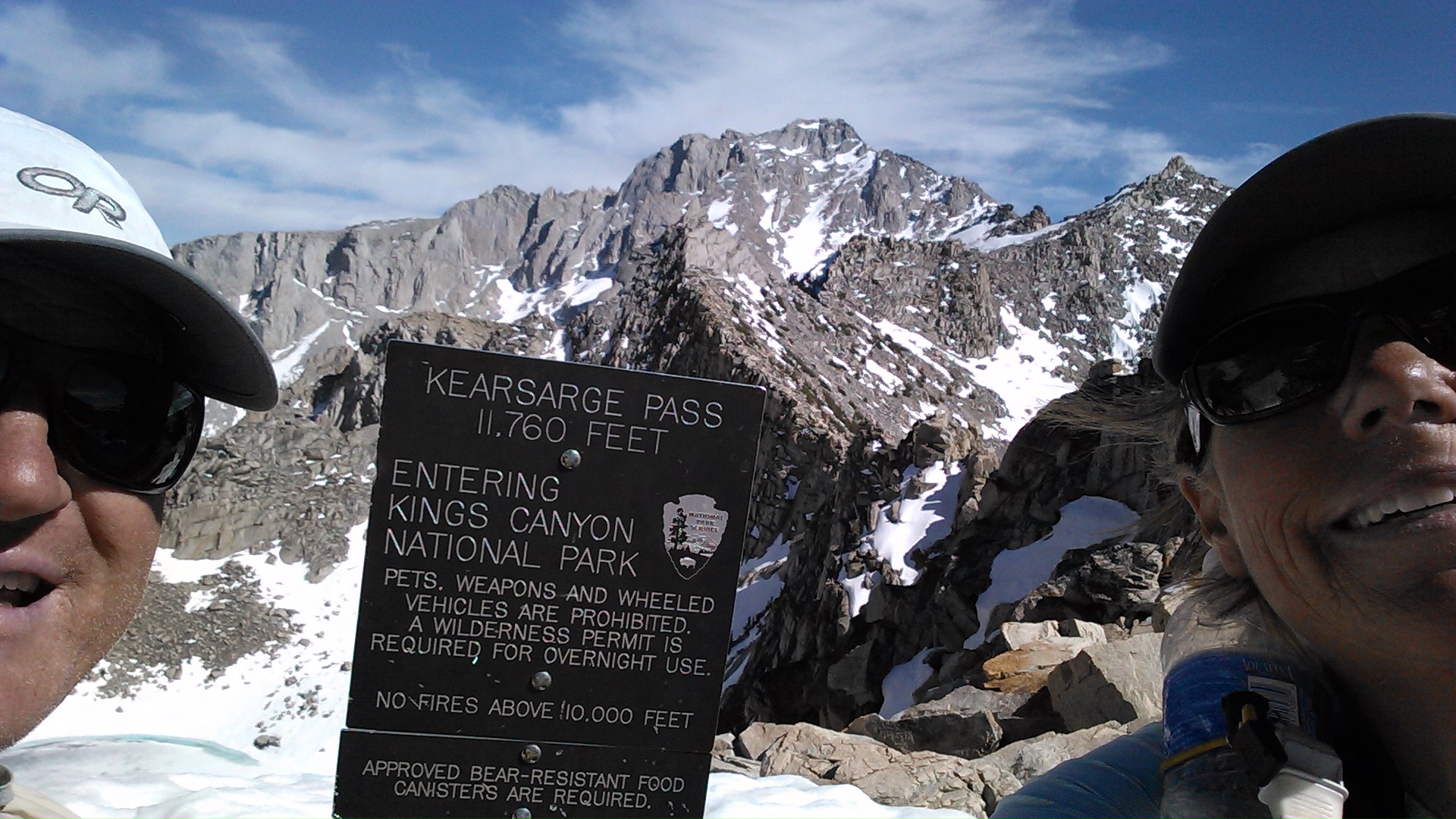 Although we were treated to beautiful sights it added an unnecessarily steep climb to meet up with the pass. When we reached the top of the pass, we wished we had carried extra food from the beginning, as we realized looking at the path down to Onion Valley Campground (which we could not see) that we would have to slog a full bear canister back up and over this 11760 ft pass. Argh!!
