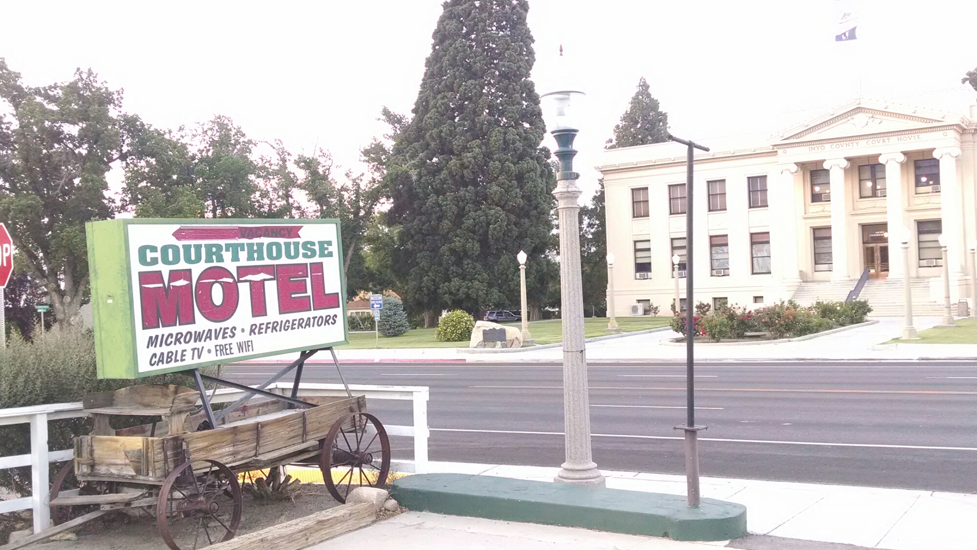 Down the trail we trod, kicking ourselves for not planning better or at least paying better attention to the elevation changes. As we descended toward the campground we were treated to more deer than we have seen our entire hike so far. They stood and stared at us, completely un-phased by our presence. As luck would have it, near the bottom we were passed by SloBro and MeToo. When we got to the parking lot, SloBro had a great idea. Let’s call the Courthouse Motel in Independence and see if they’ll pick us up, and we can stay there at least for the night. Good plan as it was 6:30pm and getting cold. SloBro had heard that the operators of the motel were very hiker friendly and if they had the time they would pick them up from the campground. With two bars of signal, the call was made. They’ll be there in 30 minutes, if we were okay with waiting that long…ah yes, how else were we going to get down the 13 mile single purpose steep paved road, walk?