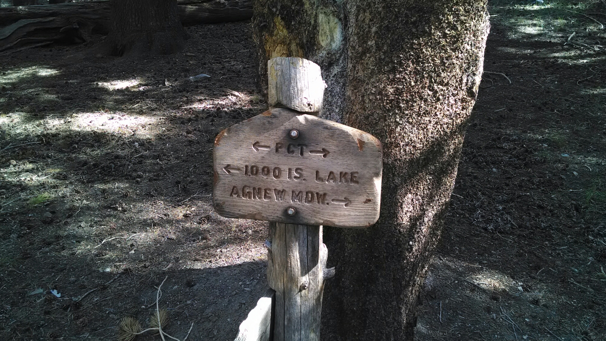 We while away most of the day on the front porch of the Sierra Nevada Resort doing our best to catch up with our blog, get current with bills and our kids. Finally it’s time to get back at the trail. Paul has talked to one of the Mammoth trolley drivers who says he can get us up to Agnew Meadows as nothing is going into Reds. We hop on the trolley with foot long Subway sandwiches for our dinner only to discover he was incorrect. The driver apologies profusely and gets us to another bus line that at least will get us “closer” to where we need to go. No worries as it’s all part of the adventure. Hiccups like this are trivial in comparison to actual life threatening situations. The other bus’s “end of the line” is at the Mammoth Ski area main lodge/store which is now converted for mountain bikers. We are told we should have no problem getting a hitch from here and he’s right. In less than 2 minutes we yogi a ride from Loraina (sp?) who’s kids have just cleared out their school and ski mountain lockers. As they are locals, she jettisons her kids (teenagers) to the bus and offers to give us a ride to Agnew Meadows. She is excited because her oldest daughter (who’s getting her haircut and not in the van) will graduate from high school next year and wants to hike the PCT after graduation, and she wants to do it with her mom…Loraina. Loraina peppers us with questions, and conversation flows freely. We are excited for her and her daughter and tell her they should definitely do it. It will be a great adventure for the two of them and a serious bonding event. We give her our card so they can follow our blog and learn from our adventures (mis and otherwise) and thus prepare for theirs. We get to Agnew Meadows and the moment we step out of the car we are swarmed and attacked by what Paul now calls “flying Piranhas”. Crap. Now we know what we forgot to get. Not that we only had it in our hands no less than three times, but never actually purchased. Deet! Loraina offers to run us back into town to purchase some bug spray (we had been using a small spray bottle of Ben’s 30% feet and had run out). We initially balk at putting Loraina out any further…she did make her kids ride the bus, but we (I) do not relish the idea having blood sucked out of me for another 100 plus miles by little nasty ear buzzing C02 chasing insects. We have head nets but they are annoying and we prefer to walk in shorts. Back into the van we climb. First stop is the gear store at the lodge. Yes they have mosquito spray, but not in a thru-hiker size container, but more like the size of some of the ridiculous bear spray canisters we’ve seen some people carrying. As we don’t want Loraina to have to drive any further, we purchase the mega canister (which we later discover is the best purchase EVER). Loraina drops us again at Agnew’s and we thank her profusely for her kindness and tell her that when she and her daughter hike the PCT we’ll be sure to return the magic. The sign at Agnew Meadows says, ” No Camping at Trail head “. We have at least two hours of daylight left, and even though we have bug spray, we’d rather not have to “tolerate” the flying piranhas till it cools off so we start up the trail and decide to walk till we find a good campsite. Four miles or so later…uphill, we find a spot and set up camp. As we set up, we see the back of a fawn colored fury animal walk through the trees 50 yards uphill from us. Hmmm, Cougar or Coyote? We heard there is a “cat” in the area that had been taking out some young cattle and wonder if this is part of its 100+ mile range. We continue to look for the animal as its last “track” was downward toward us. All of the sudden it appears less than 10 yards from us. We both jump…I directly behind Paul. Phew, it’s only a coyote. He looks at us. He’s a bit mangy…not good. We yell at him. He looks like he’s pondering a decision. Paul decides to help him with it’s decision, picks up a couple of rocks and motivates the mangy coyote to move on. We watch to make sure it doesn’t circle back around. Territory defended. Check. Now for our sandwich and bed.