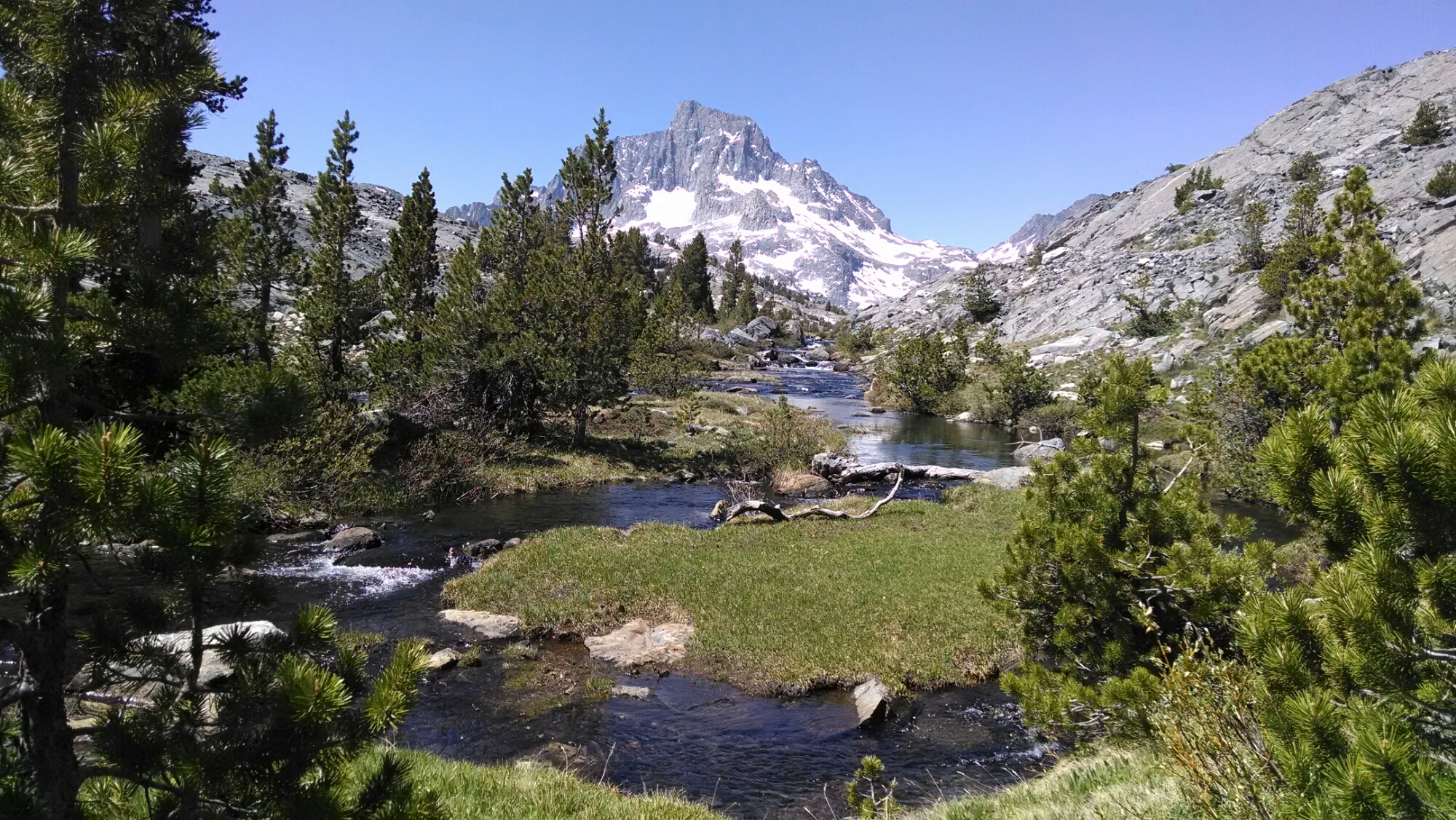Down at the river we cross to the other side and look for a campsite…aka a 5ftx5ft flat piece of dirt. Before this endeavor however we must douse our arms and legs with bug spray. These flying terrorist have declared jihad on hikers. We found a good camp site and settled in. Tonight the sky looks like, and the air smells like rain with large grey clouds overhead. I guess we’ll see how our tent does in the rain…if it does end up actually raining. Often in the Sierras, it tends to threaten to rain then doesn’t…which is okay with us. Tomorrow we will further descend into Lyell Canyon and head to the Tuolumne Meadows store to pick up a resupply box and and a cheese burger. YUM!