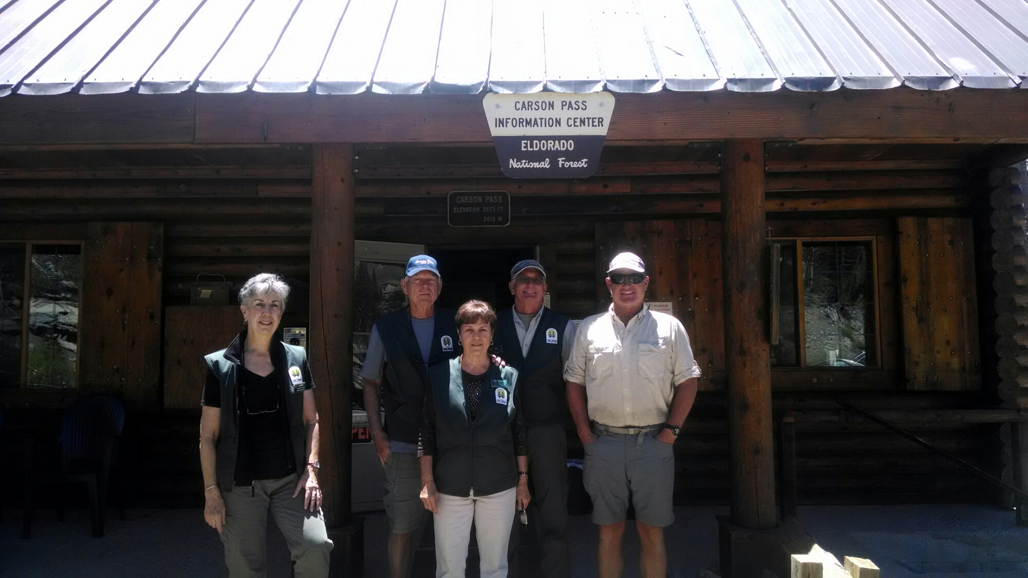 On our way to Carson Pass this morning. We are excited because the ranger visitor station has a PCT register and we can see who/where other hikers are on the trail. So off we go and over the pass. A couple of climbs and switchbacks with great views of dark blue lakes. As we descend the last two miles we encountered several day hikers who look so clean and smell so fresh. They are chipper and all smiles as they walk their first mile. We can only  wonder what they think of these two dirty smelly hikers. We say hello as we pass and are proud of how we got this way. Hikers refer to this condition as “hiker trash”. We are probably  the cleaner hiker trash out here. Some hikers look like they have been on the trail forever and pride themselves on that look too. When we reached the Ranger Station, we are greeted by a wonderful volunteer staff. They are all very cheerful, enthusiastic,  and helpful. We sign into the register and look for hikers who we’ve hiked with the past 1,078 miles. We see Gear Slut 5 days ahead, Atlas 7days ahead, Spirit 10 days ahead, Ally and Thayer  ( now Alpaca and Yukon)14 days ahead. We won’t catch these guys unless something crazy happens, but it’s nice  to know that they’re still on the trail.  The volunteer staff served us cake, fresh fruit, and cokes. Awesome! Inside the register we  found an envelope addressed  to “2moremiles”. A retired friend from CA. State Parks who lives in the area wants us to call him and his wife for some trail angel magic. Carl and Dori offer us a shower, laundry, dinner, and room we can’t refuse! We relax for about an hour until Dori arrives. Dori is an active day hiker in the local area who gives us a run down of the local trails as she drives. She has also done many multi-day trips locally  and far outside the area. We share hiking stories as we travel through some amazing country to their home.  When we arrive at their house we are afforded our own ” house” complete with laundry and an awesome shower.  We do our best to get ourselves and clothes clean, both of which seem exceptionally dusty/dirty.  Once presentable and stench free we join Dori and Carl for a wonderful evening complete with a tri-tip dinner and fine wine.