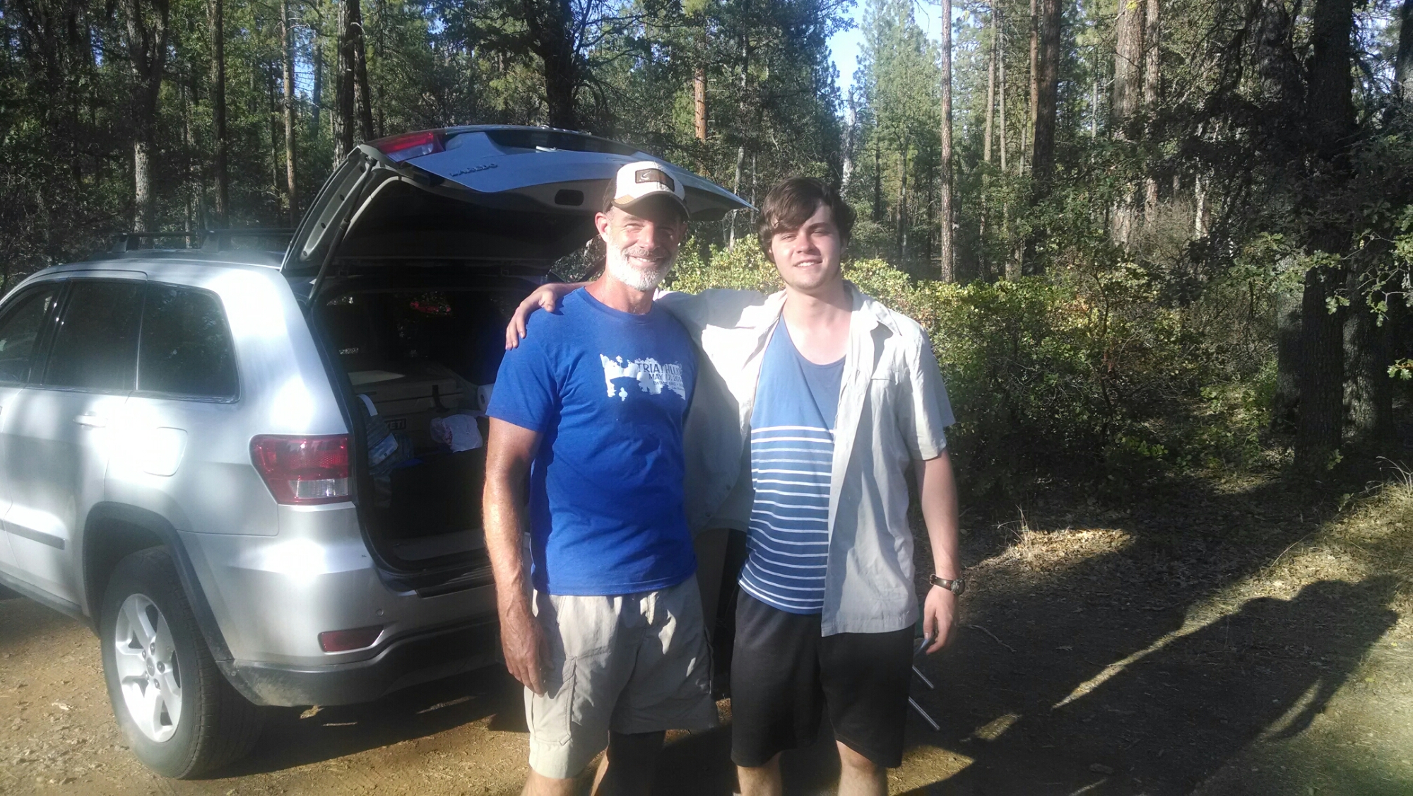 I awoke to drool factor 10 and had a cup of tea, then more Ginger ale.  I figured Paul would make it into Burney Falls State Park near around 9 or 10.  I went looking for him around 10 by the park store. A few thru-hikers were there but hadn’t seen him.  They told me about the Bird Spring cache and thought maybe he got waylaid there.  They said the cache was incredible…beer, soda, icy cold water a picnic table, stove plus food.  Figures I miss that one too.  I mutter aloud that if i had WiFi id be able to locate where Paul is exactly, via the Delorme. One of the hikers tells us that you get free WiFi at the visitors center.  Now why didn’t we know that.  We go to visitor’s center. Per the Delorme locator he should be just before Hwy 299.  We decide to drive over there thinking maybe we can catch him before he enters the park.  No such luck.  We go a couple miles down the road and find cell service.  I now see the text from Paul to pick him up at 8pm at Hwy 299…last night. Uh oh!  I now begin to worry a bit.  Where is he. I text him. ‘Where are you?.’ No reply.  Hmm. Maybe he thought we were supposed to meet in Burney (the town).  We drive down the road looking for him. No Paul.  We get to town and check the usual places…McDonalds, Pizza place, Safeway.  Still no Paul.  Well at least at Safeway we pick up a Coke and bag of chips for him and more Ginger Ale for me.  We figure once we find him, we’ll come back for our resupply shopping, and maybe a pizza.  By now the antibiotics are in full effect and I am feeling somewhat human.  Paul responds to my text of ‘where are you?’, “hiking”.  Not real helpful.  Looking at the locator shows he real close to the park. We race back and look for him.  No other hikers or the entrance station has seen him.  Now I’m really worried. It’s super hot, and maybe Paul is sick now. We decide to walk over the hike and bike campsites where they direct the thru-hikers and look for him there.  If our Delorme was set for 10 minute tracking we would have located him sooner, but to save the battery we have it set at 2 hours.  We see him near the kiosk and call to him.  He is pissed, especially because I didn’t respond to his text last night and he couldn’t get ahold of me.  Turns out that he hitched into town, around 8pm, ate pizza, drank beer, got a motel room, did laundry and shopped for his resupply. When we were looking for him in town we had actually passed each other on the road as he had hitched back to the trail. Lessons learned. Stick to the plan, and make sure we all know the specifics of the plan, and countermeasures for variables.