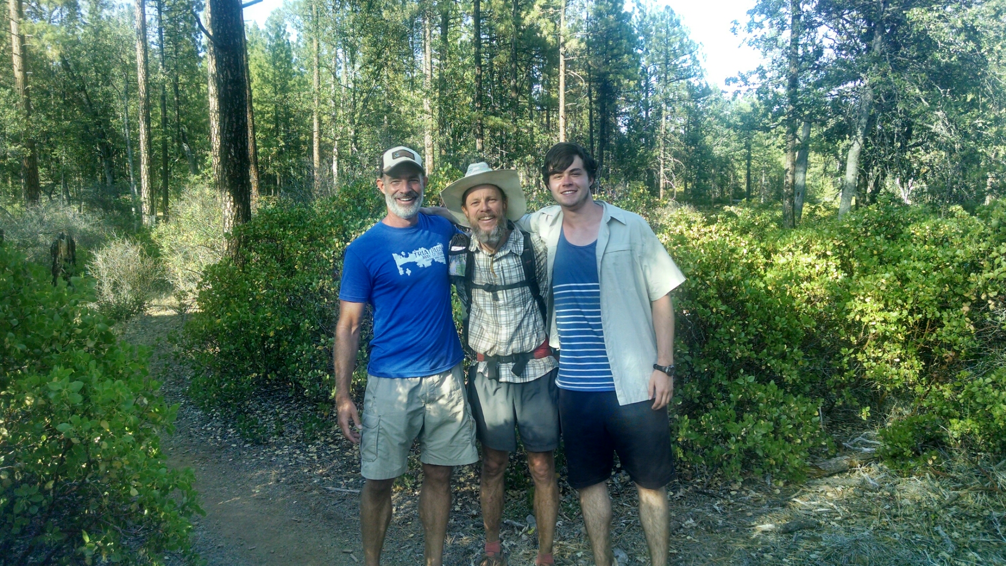 When we drove back into town for dinner, we stopped to take a picture of a sign on the trail.  The father and son were waiting there and had decided to set up camp at that junction.  While we were talking, I spied a hiker heading our way who looked similar to the man standing in front of me.  ‘Look there, is that him?’, I pointed out.  Why yes it was!  How cool it was to be there at their reunion and to be able to capture it for them.  They had driven cross country from Georgia, and their plan worked!