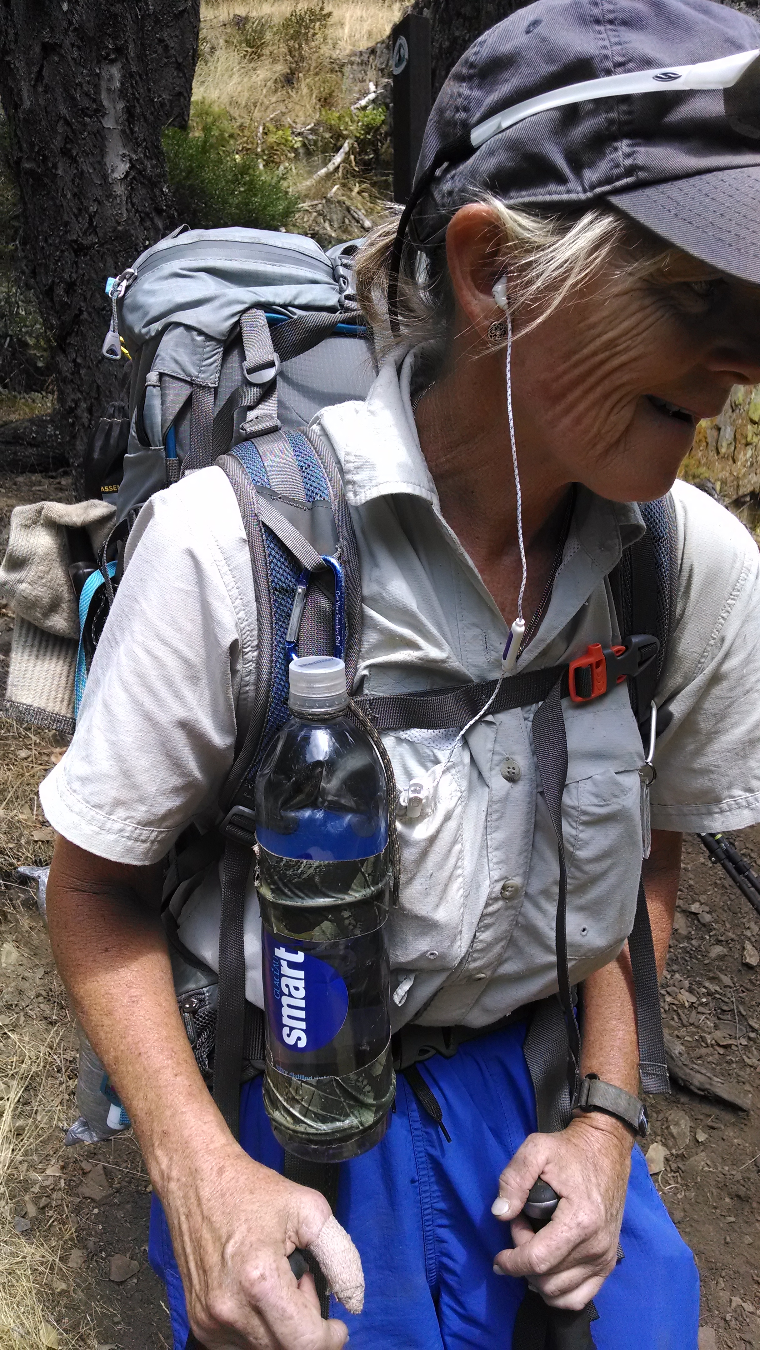 We awake to a cool morning. It appears that we chose our campsite location well, for if we had gone another 100 feet we would already be baking in the heat of the sun. Since we had Donna ditch her water bladder in favor of two plastic liter bottles, and her pack design did not allow for her easy access or grasp of the bottles, so all yesterday I had to fetch her water for her. Today she will be self sufficient as we came up with a rigging system for frontal water access.