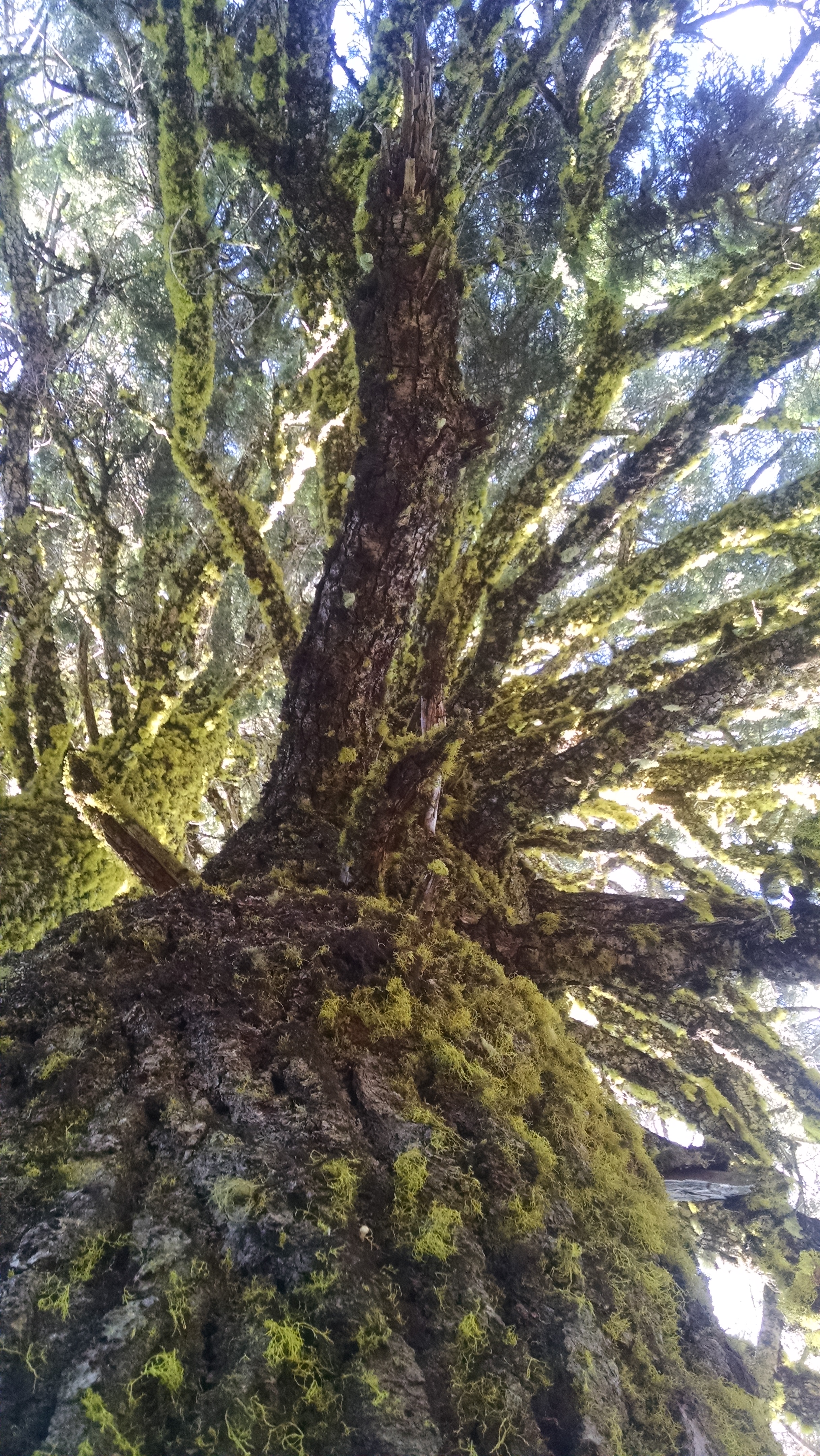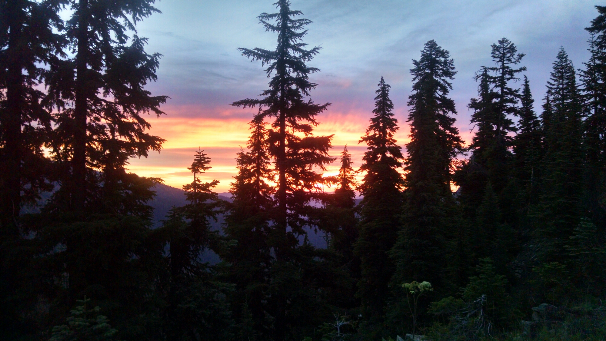 We ducked into the final water stop for the day and reclined under one of the most unique trees we’ve seen, a three pronged tree dripping with dayglo green moss. Several other hikers arrived, and we discussed the signs and symptoms of Giardia and whether they had it or not. We told them how long I had been symptomatic (4 weeks) and passed it off to heat exhaustion… So better to just go into town, see a doctor, and get tested. Lesson learned. Although it would have been a great place to camp, we needed to grind out a few more miles to set us up for the descent into Seiad Valley. Onward we went for a little more than…2more miles, and camped at a road spur as darkness settled upon us. As we had signal, we called our daughter who had what we believed texted us on our Delorme to call when we had signal. She was delighted, yet surprised we called. We asked, ‘What’s up?’ “Nothing. Why?” You texted us to call. “That was Tuesday”, she replied. Ya, and it’s Wednesday. So what’s up? I respond. Laughter follows. ” Mom, it’s Sunday, everything is good. I’m at work.” Uh Oh! Seems we’ve totally lost track of time. We talk for a little, but she’s got to get back to work. That Giardia must have taken a lot out of me, in more ways than one. Geez. We settle in for an uncomfortably warm night’s sleep.