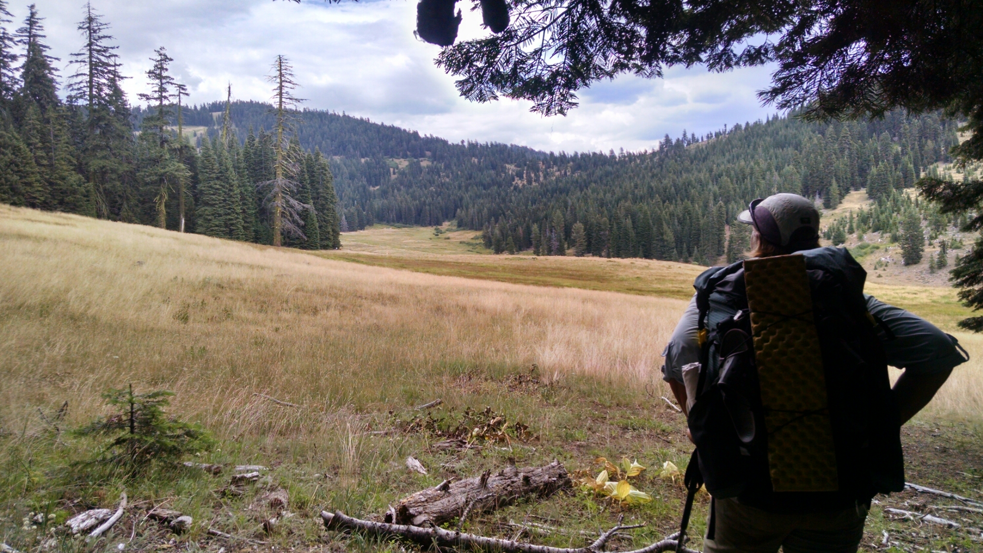 In the afternoon we arrived at a spring to water up and once again and the hiker crowd gathers. Sprawled out amongst the shade of the trees the crowd digs out snacks to enjoy with the ice cold spring water. Everyone is making camping plans, looking at maps, and zeroing in on their final destination. After a short break in which we think we have waited out the heat of the day, we take off up hill, which seems to be today’s theme, for a six mile hike. 20 minutes into it we realize we have not escaped the heat as we trudge across an exposed ridge line. Brilliant. The things we do in pursuit of miles. At least we are not alone in our idiocy as several other hikers had the same idea. About two miles in we meet two section hikers, Larry and Oompa Loompa. Oompa Loompa tells us she got her trail name because… well she looks like an Oompa Loompa, and I’m afraid I have to agree, even down to the striped shirt. They started in Seiad Valley yesterday and are hiking the state of Oregon. They are exhausted and I had to ask why they started with such an ugly climb? They told us they wanted to hike “all” of Oregon and this was the closest trail head to the California/Oregon border. If they started in Ashland they would have cut off 20 + miles. Now they wished they had. We gave them encouragement and told them it would be “easier” from here. We reached our miles goal and located a flat area to camp for the night. Tomorrow we will cross in to Oregon and say good bye California and maybe, just maybe, Mt. Shasta will finally go home. Tomorrow we will have been on the trail four months. Wow.