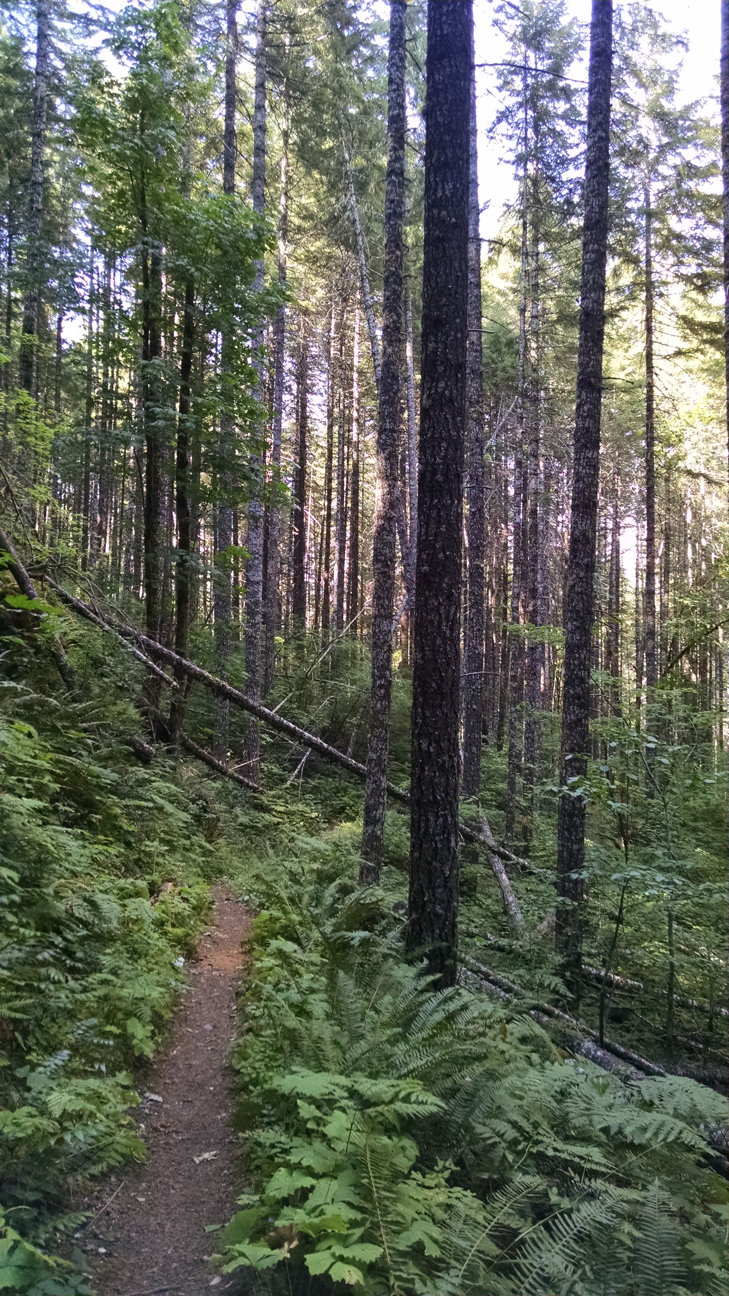 The forest while green, is different from the forest of Oregon.  Here the forest floor seems cluttered with downed trees, fallen branches stacked upon each other, new growth trees, giant ferns and other green leafy material.  We get the sense that if you veered off the trail, the forest would swallow you up and you’d never be seen or heard from again.