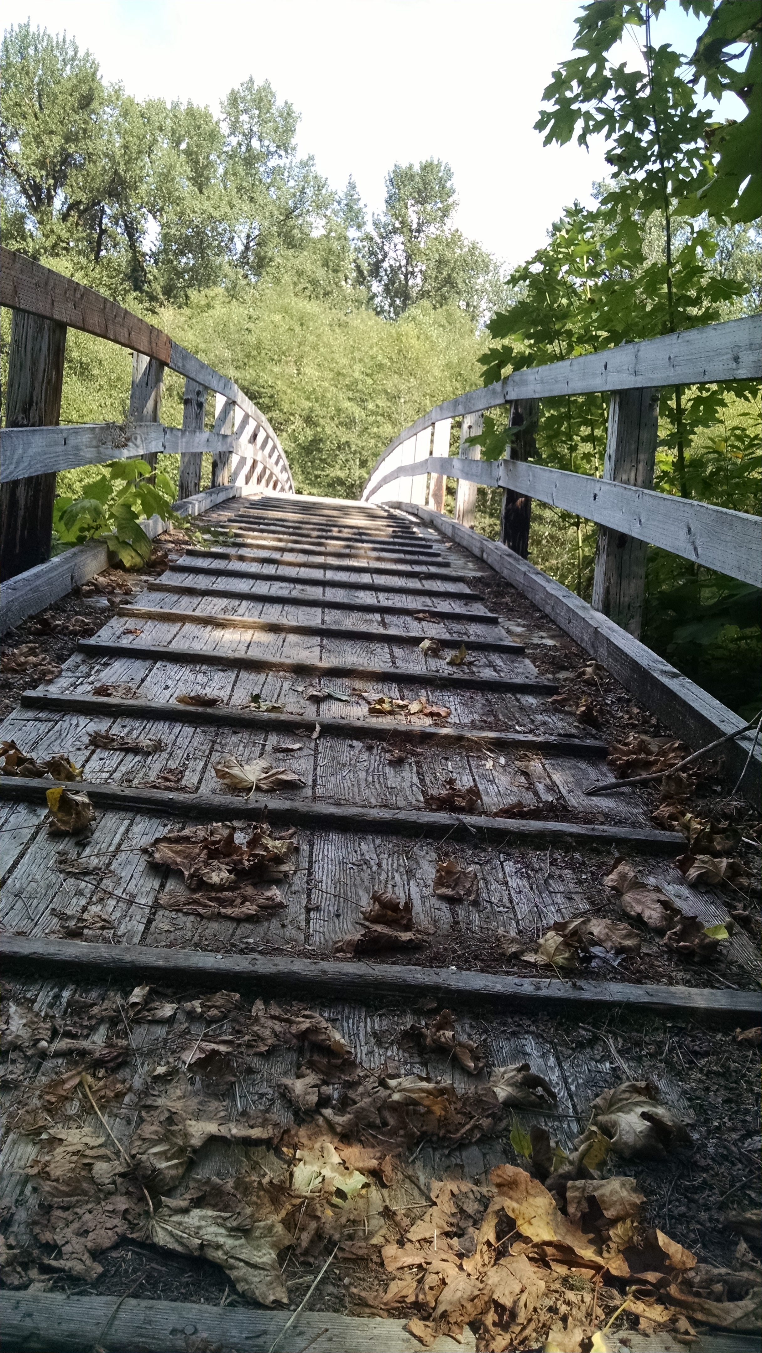 Most of the larger creeks had sturdy bridges upon which to cross.  No time wasted changing shoes for water crossings. The last water source we crossed, Panther Creek, had some rock fish traps, of which we forgot to take pictures of.  We did however, capture a shot of ” Double stuff” from the UK issuing his family (via video) to the “Ice Bucket Challenge”.