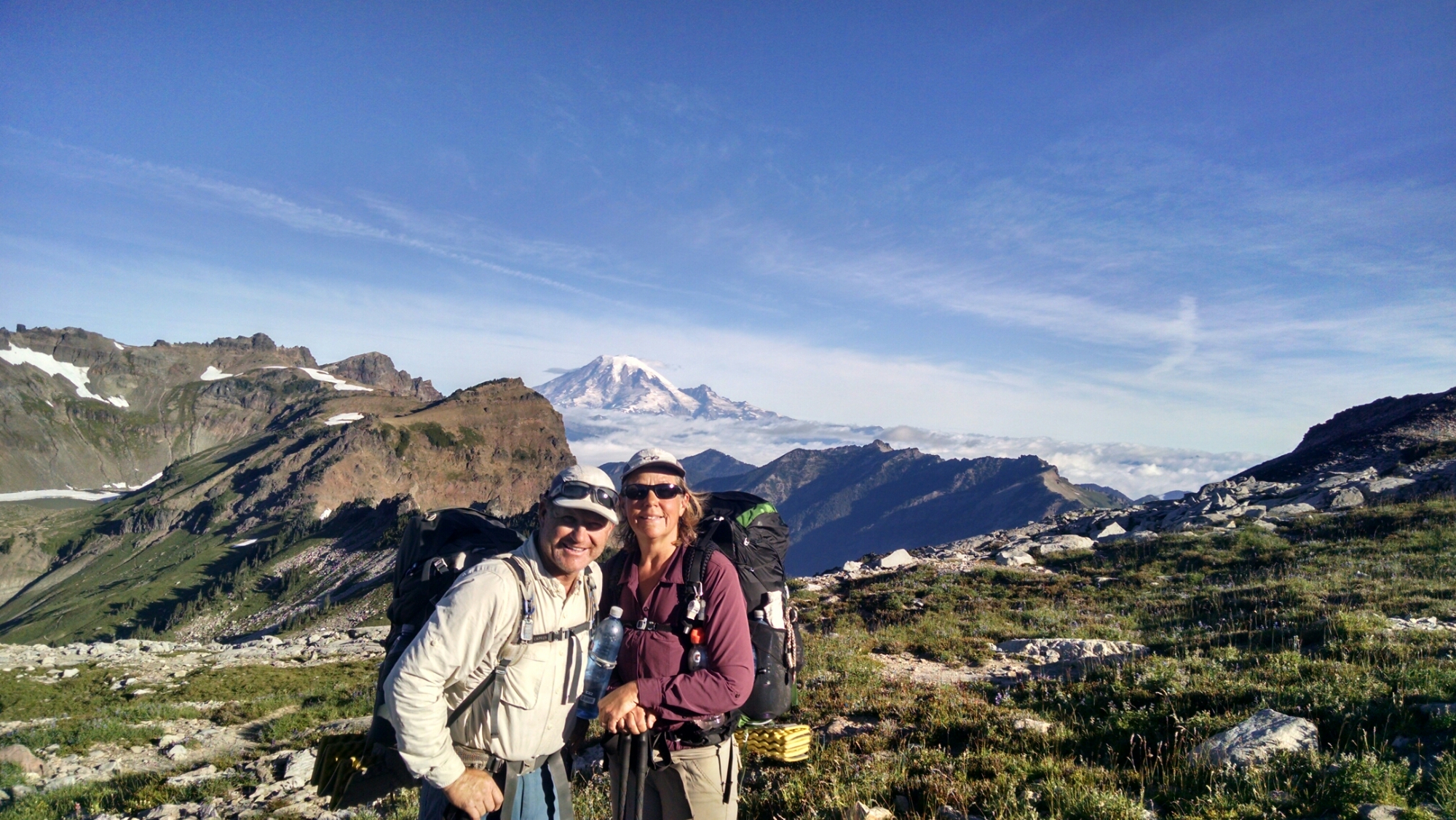 As we crest the ridge we get our first real view of Mt. Rainer. It’s incredible! Between us and the mountain is maybe 40 or 50 miles, but it looks a lot closer.