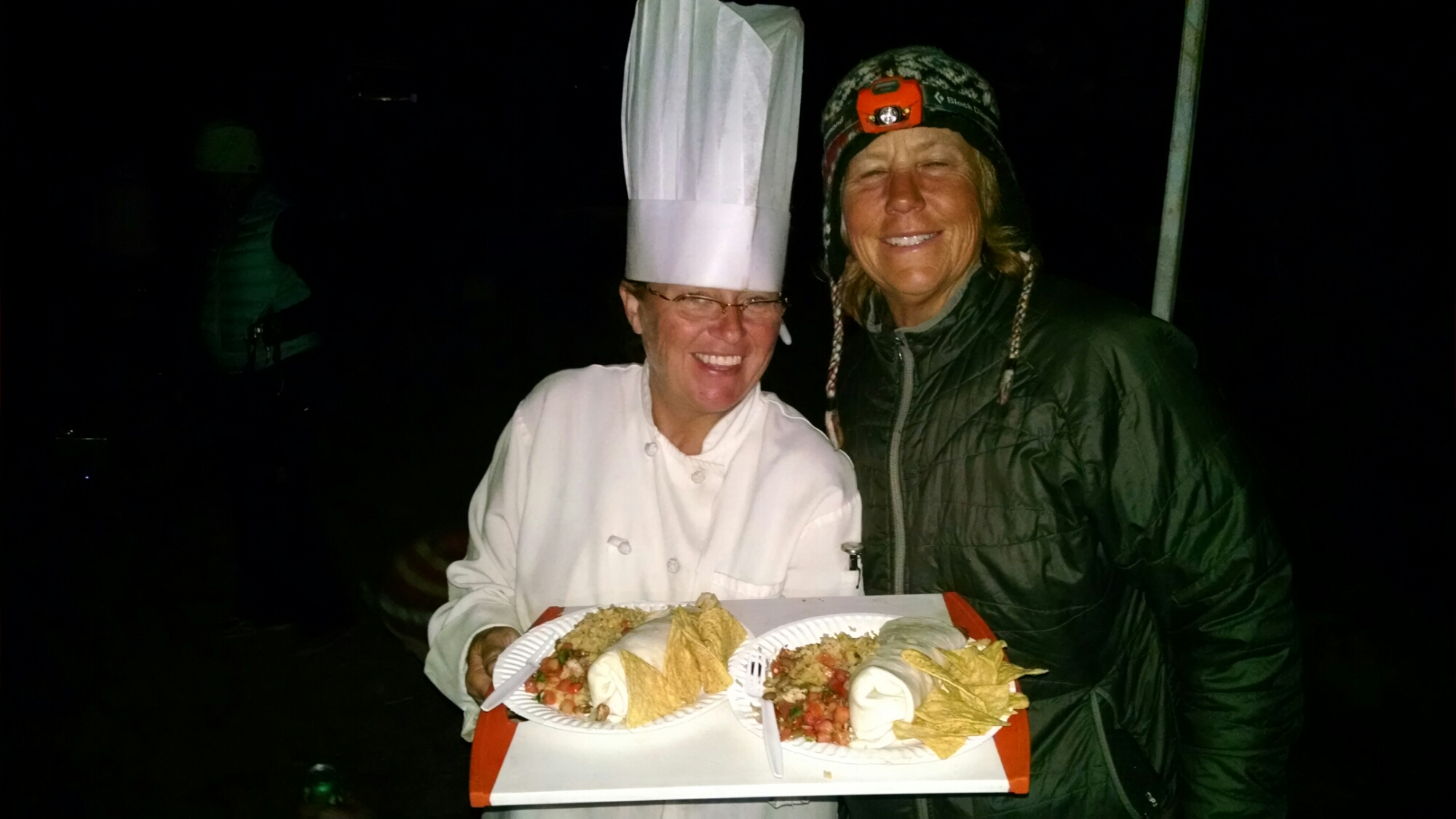 Chef, being a real chef, made us a great Mexican meal that was what we needed after the long trek. While eating we notice a note in the picnic table that read, “lost SPOT…if found please contact Acorn the Elder” and it had phone number. Ah Ha, we know Acorn. We will call his number in the morning at White’s Pass. Now, being the only sober people, we made a quite stealth exit using the darkness for cover. Up the road we found an abandoned dirt road that had a cement barricade blocking any through traffic as a place to camp.
