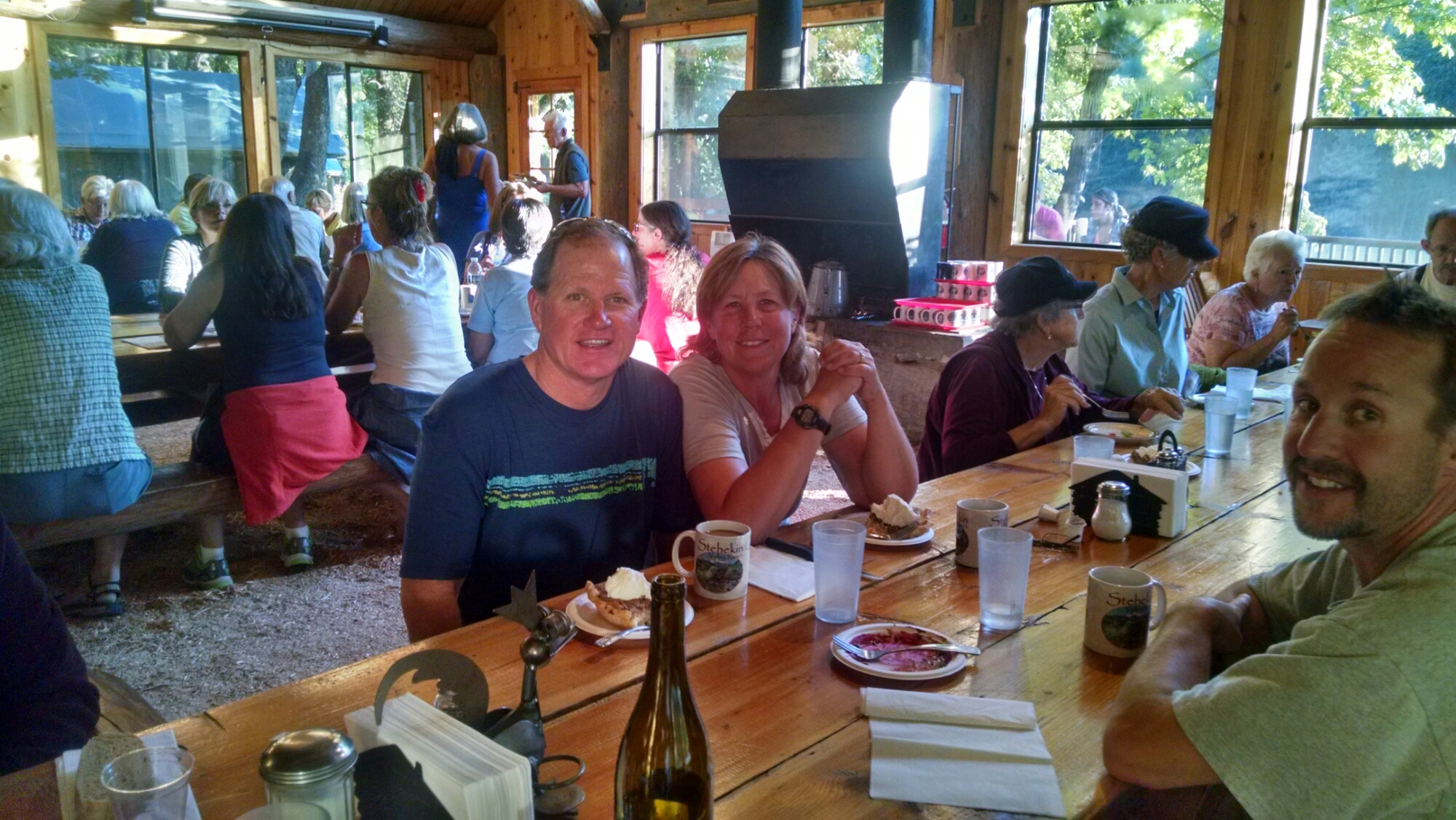 Soon the dinner bell rings, and we all filter into the grand mess hall for tonight’s special, PRIME RIB! The spread that accompanies the prime rib is vast and delightful. We eat till we can’t eat anymore and then do our best to stuff in a piece of pie, fresh from the bakery. It feels like Thanksgiving, and we are uncomfortably full…a first on the trail. Overcome by the onset of a food coma, we retire to the blissful quiet and darkness of our cabin.