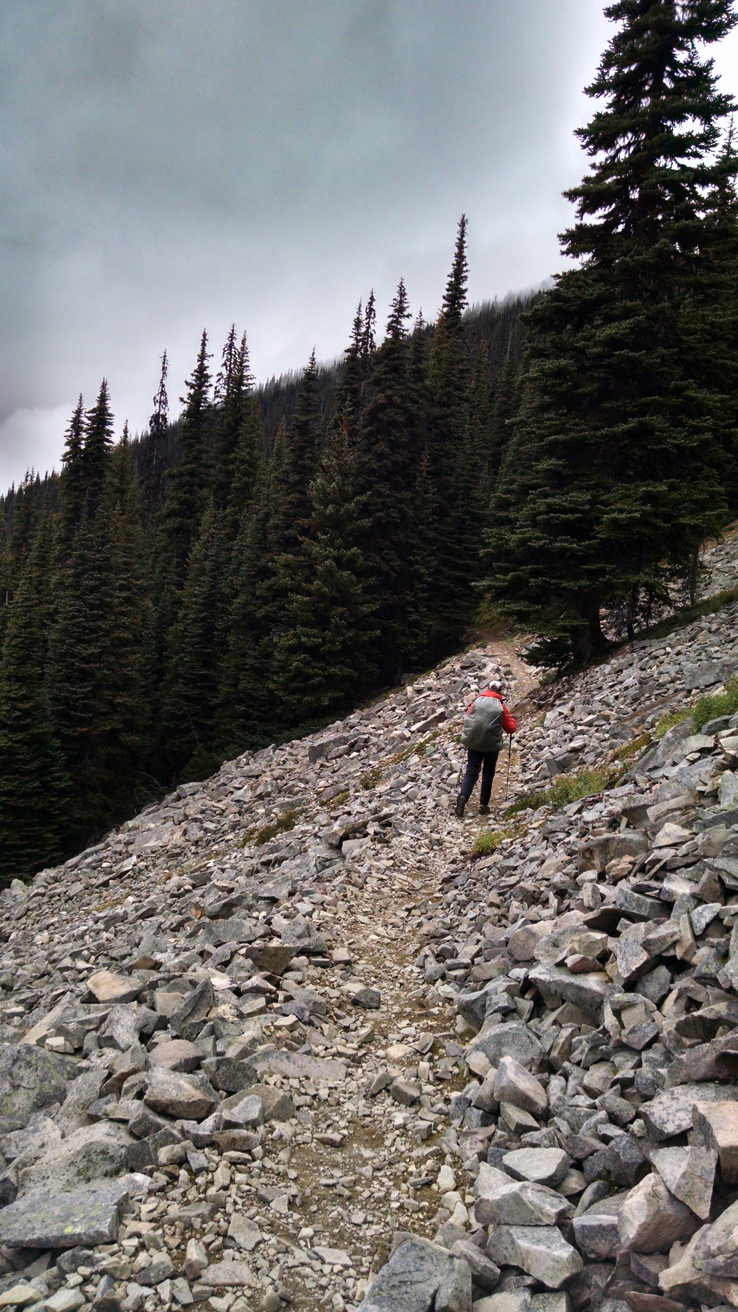 The rain lets up in time for us to pack up our gear without getting drenched. I fill my 1/2 liter water bottle with the rain water from my cup I left out overnight, proud of my ingenuity. We skip coffee and throw down our last poptart.