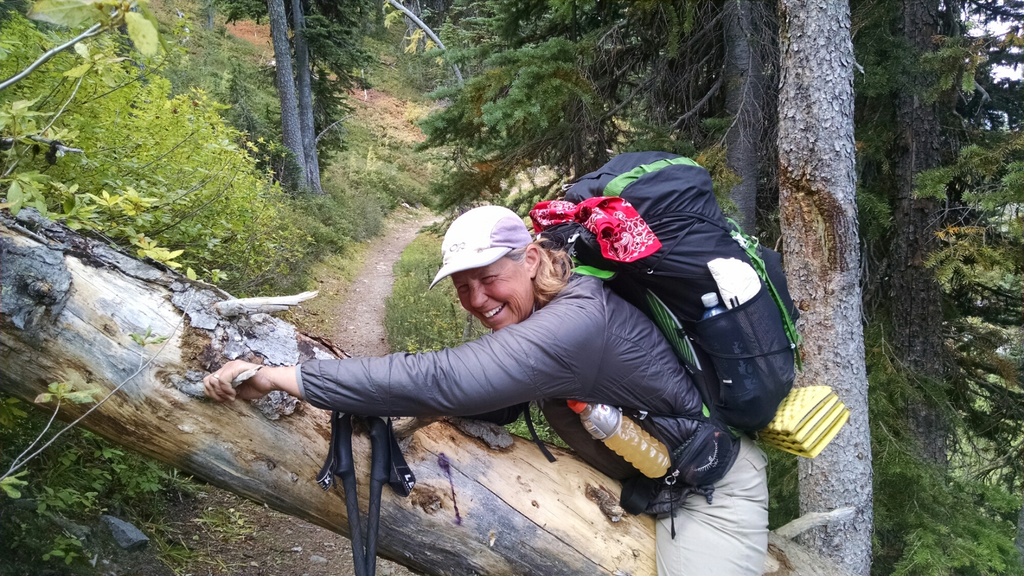We left Hunting Larry with plans to meet up later this year and walked away giggling, feeling the affects of the 7% alcohol. We couldn’t get over the luck we have had on this journey and once again found ourselves saying, “What are the chances?”. Not long after leaving Hunting Larry we encountered one of what feels like a thousand blow down trees we’ve had to get over, and I get “stuck” on top of the tree.