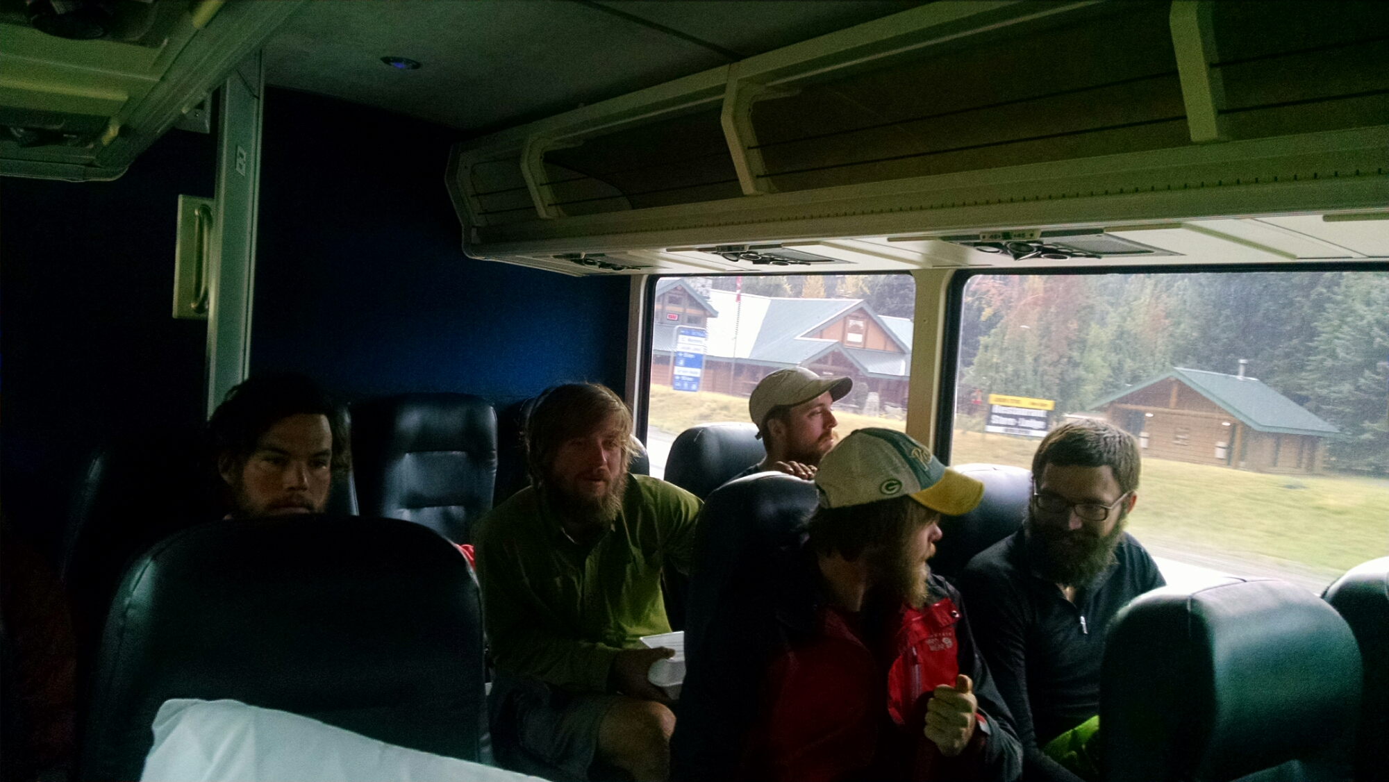 The one day we can sleep in till at least 9am, we can’t. We are wide awake at 6:30 am with nothing really to do. The restaurant, store and laundry do not open till 0800, and for the most part there is nothing on Canadian TV. In the middle of the night we had switched from one of the two queen beds in our room to the other as we kept finding ourselves rolling toward, and sinking into, the middle of the bed. It was like being on an uneven piece of real estate. We laughed as we had hiked all these miles, we finally finish and get to sleep in a real bed, and its almost more uncomfortable than sleeping on the ground. Luckily the other bed was not as well slept in. We should have known, seeing that the TV was at the end of the “well used” bed…things to remember for the future when traveling and “cowgirl camping”. We get up, make in-room coffee and prep the laundry. We expect that this will be the last time we will have to wear rain gear indoors. We try and add a few more posts to our blog, but the WiFi at the Lodge is actually “WeeFee” (barely works), and our phone has no signal, so we can’t call anyone and tell them we made it. The whole experience is a little anti-climactic. We dump our trash, which includes food wrappers, our sit pads, the 22 oz Schoolhouse beer bottles, water bottles and some super stiff/worn out socks. Our feet are sore and our shoes smell awful. We would have trashed those too, but we figure they may come in handy while in Vancouver. Until then, we will wear our Crocs. We shuffle downstairs to the lobby and registration desk and inquire about the laundry costs. We will need Canadian coins, “loonies and toonies”, What? These are one and two dollar coins. We convert our cash into “funny” money. It’s 7:50 am. As there are only two machines, we want to snag at least one, first thing. Our plan is to put our stuff in the wash then take a dip in their salt water pool and finish with a soak in the jacuzzi and spend some time in the steam room. Paul wants to hit the sauna as well, but I will pass as I’m pretty sure we walked in a sauna on more than one occasion. We would have done this last night but everything shut down by 10 pm. As we stand outside the locked laundry room door, a maintenance person comes by. “You need into the laundry room?” she asks gruffly, as we stand there in our rain gear and Crocs. We nod, affirmatively, and say that it’s not 8 o’clock yet. She looks at her watch and waves her hand dismissively at us saying, “oh, it’s close enough. I’ll open it up for you.” Paul decides to be daring and asks if she’ll open up the pool too. “Sure, why not?” is the response. Good thing we were there early, because no sooner did we load our clothes into the machine, two other hikers appeared with laundry on their minds. Phew. Good timing. The thought of a 4+ hour Greyhound bus ride in stinkyville clothing into the metropolis of Vancouver did not seem appealing for us nor I’m sure for the other passengers, that may or may not be through, thru-hikers. We mark our watches for turn around time. We need to have everything done so we can be on the 1010 bus to Vancouver. Into the pool building we go. We strip down to our last clean pair of Exofficio underwear. First a dip in the pool, then a soak in the jacuzzi. While the jets are strong, the water is not super hot, but it will do, and we do our best to reduce the soreness. On the last downhill to the lodge my left quadricep was doing its best to give up and seize on me (What is it with the left side of my body?) We knew it was going to be a long sedentary ride and we needed to get as much lactic acid worked out as possible. 68 miles in 2.5 days had reaked havoc on our bodies, but it was worth it. By 0930 we had everything done. This gave us time to get a coffee, a danish and something to eat for the bus ride. We also made sure we had some Coke to go with the 3/4 full bottle of Captain Morgans Spiced Rum we had left over from the night before. We had thought we would have drank more of it the night before, but we were just too exhausted. No worries, we’re retired and now officially on “vacation”…would you like anything with your cinnamon bun? just some rum thank you. The bus arrives and we gather with several other hikers who had finished yesterday as well.