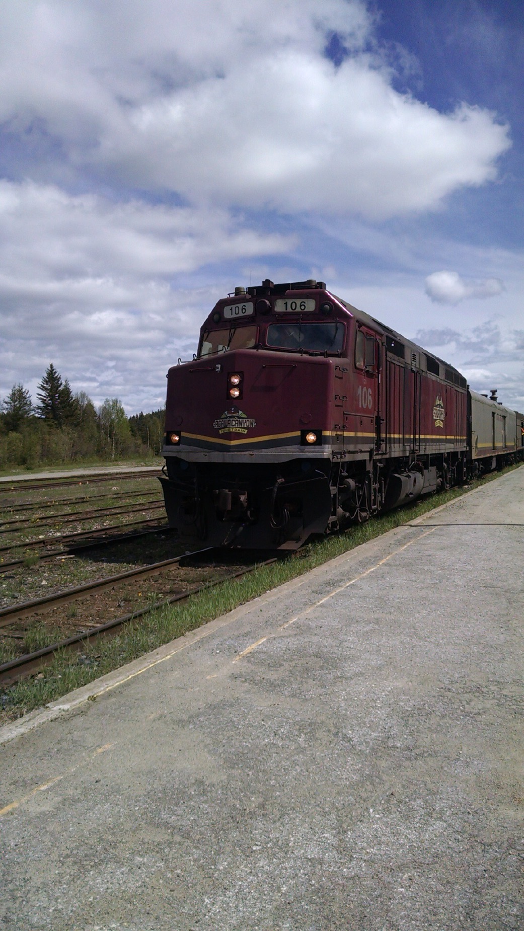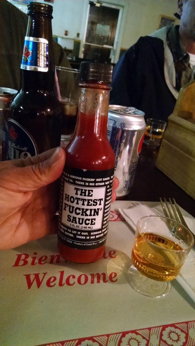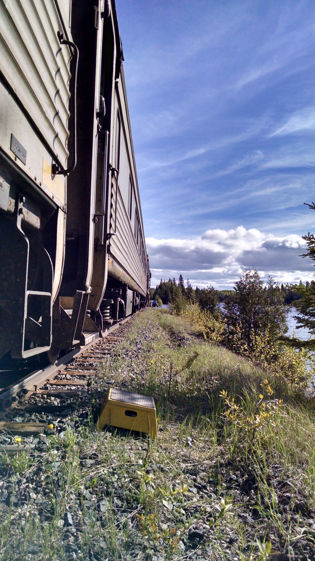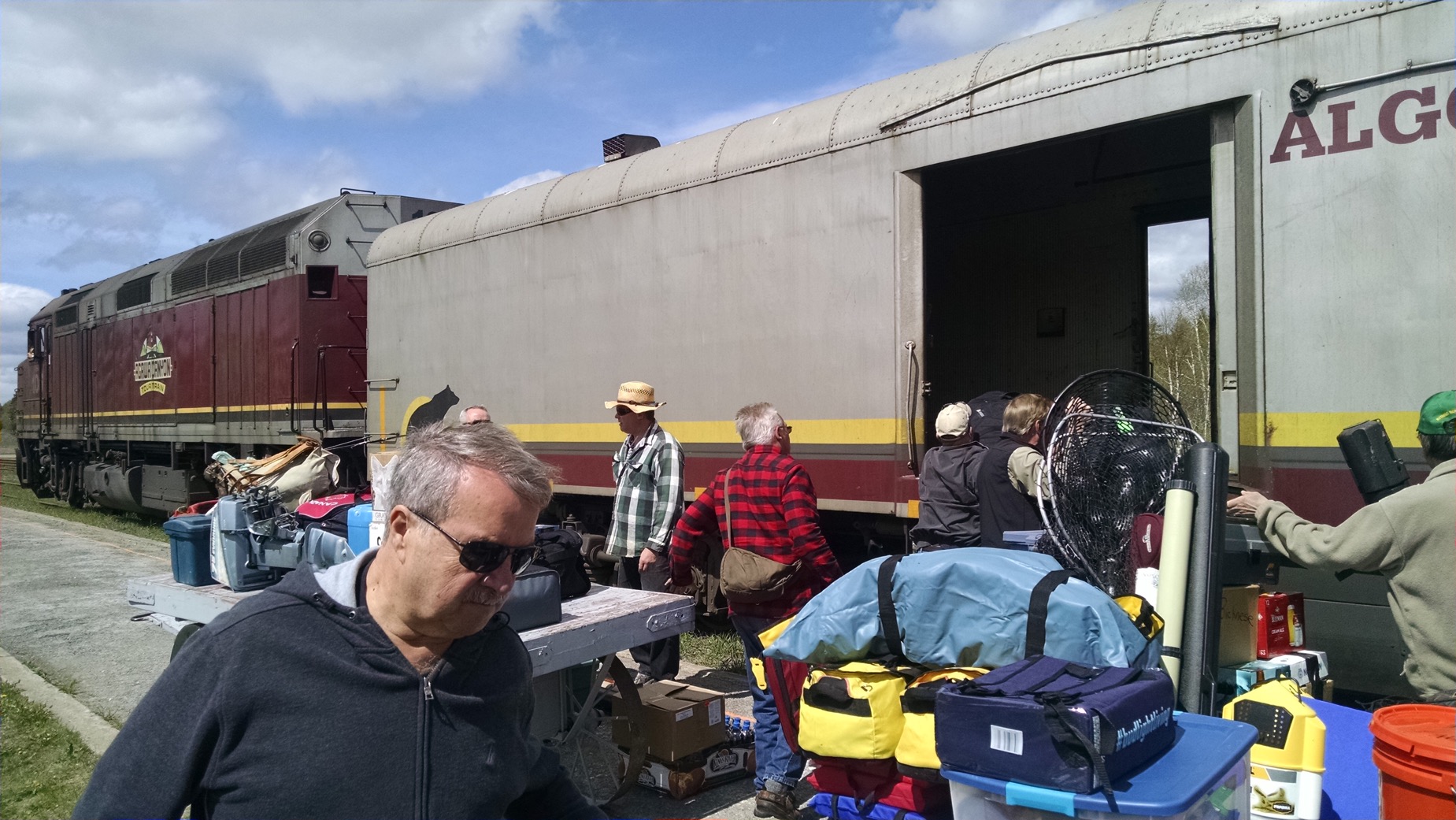 The bottle says it all…”The Hottest Fuckin Sauce”. I try it, and it’s hot, but not “Fuck’n Hot”, more like “that’s got a kick to it, hot”. Alas, the land of the North does not understand hot sauce, but they do get burgers. Eventually the train arrives. The train station is something out of the wild west. The train saunters into the station stop, and everyone (myself included) grabs their assorted camera phones and records it’s arrival, as if this is a new fangled mode of transportation. The platform is piled with gear, and includes 30 other fisherman. The fishing camp (Woods Cabins) we are headed to is an hour and a half to two hour ride. From what we are told, camp is somewhat “primative” and requires us to bring in all our food and libations. They do however provide shelter, privies, aluminium boats with 9Hp motors and minows. I am further told that there is an opportunity to “shower” and use the “sauna” Monday and Thursday evening. This should be interesting, but frankly it’s a step up (with regard to amenities) from our previous 5 1/2 month adventure. Cargo doors open and suddenly there is a flurry of activity.