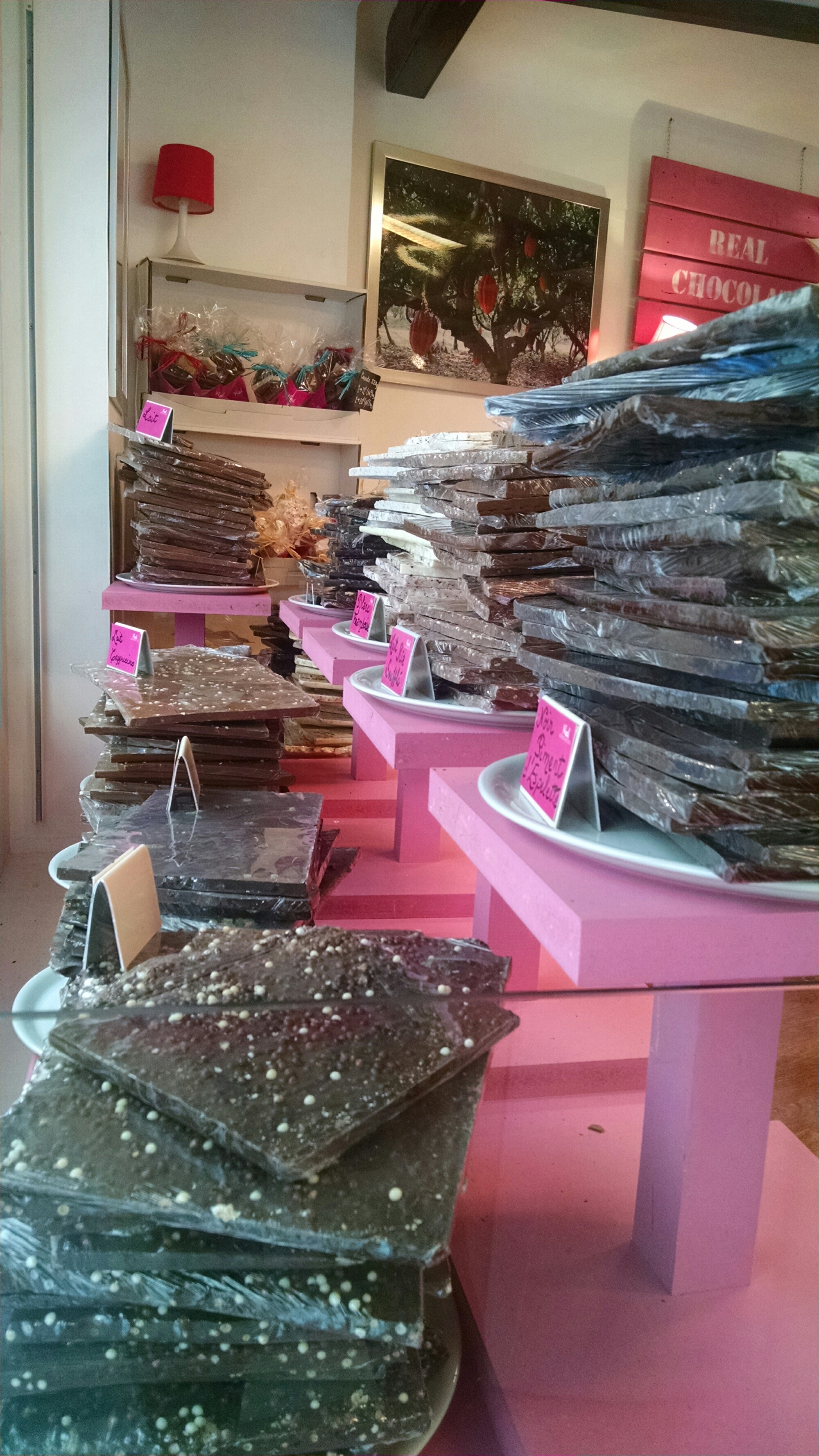 Sue and I consider a slab of chocolate, at a chocolatier, but the smell is enough to generate a sugar headache and a mild catatonic state.