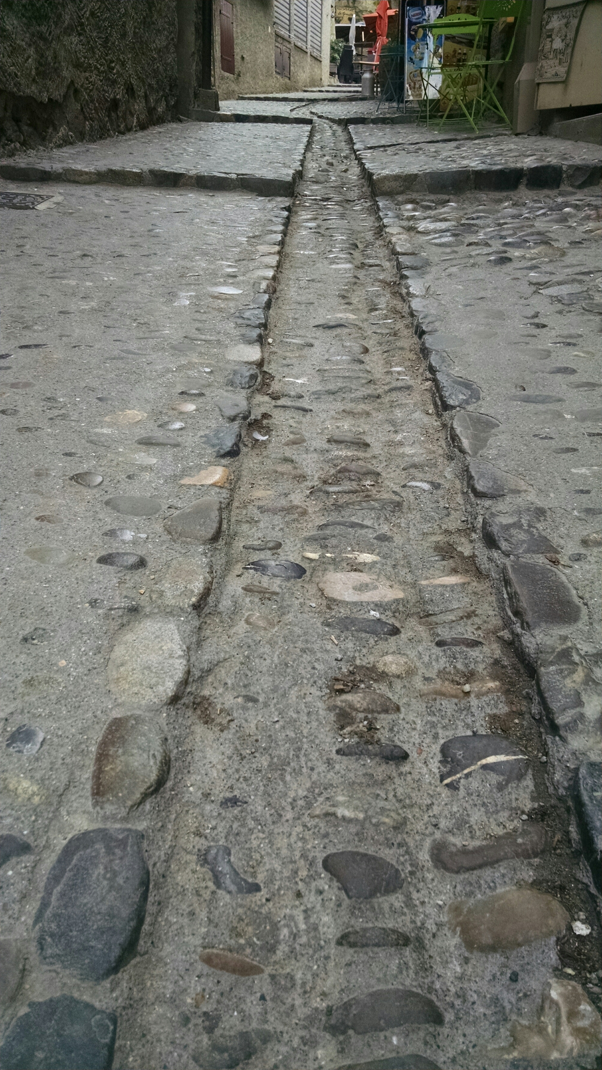 as demonstrated by a quartet of men who broke out into song while we were there. As the day progressed, so did the cloud cover and humidity. More than once it threatened to rain, but it waited until we were back in Toulouse about to eat dinner at a bistro on their sidewalk patio. As the skies opened up into a gusty torrential downpour, we were able to retreat inside. In no time, rivers of water rushed down the edges of the streets as large and crowded drops peppered the seats we previously occupied. Needless to say, we took our time and let out of the bistro back to our hotel just as the rain subsided into a gentle patter upon the granite lined sidewalks.