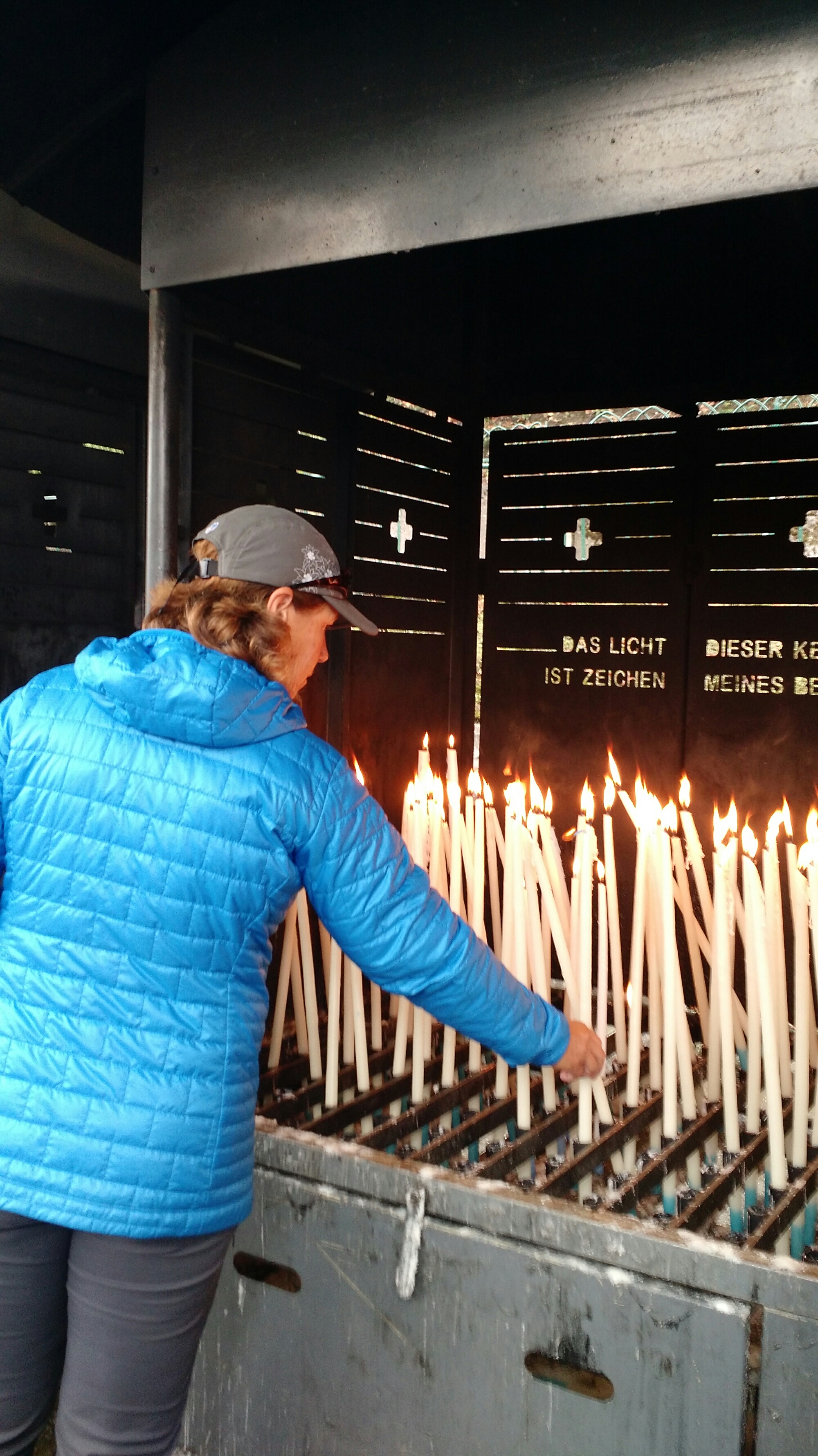 as we light candles in offering for continued prayer. I pray for myself, that my body will hold out on this walk as ironically I awake this morning with near debilitating sciatica… What a better place than Lourdes to have this test of faith. I wonder if my faith is strong enough and if my prayers for the healing of those I love will be enough to provide respite from their suffering. Will I recognize the windows of opportunity placed before me and will I have the faith to walk through doors, open but a crack, to enjoy the possibilities that lie behind them. I find that without forethought this journey, our Camino, has begun to take on greater meaning and purpose than a “shorter” long walk along a historical path through the beautiful countryside of Spain. Go figure.