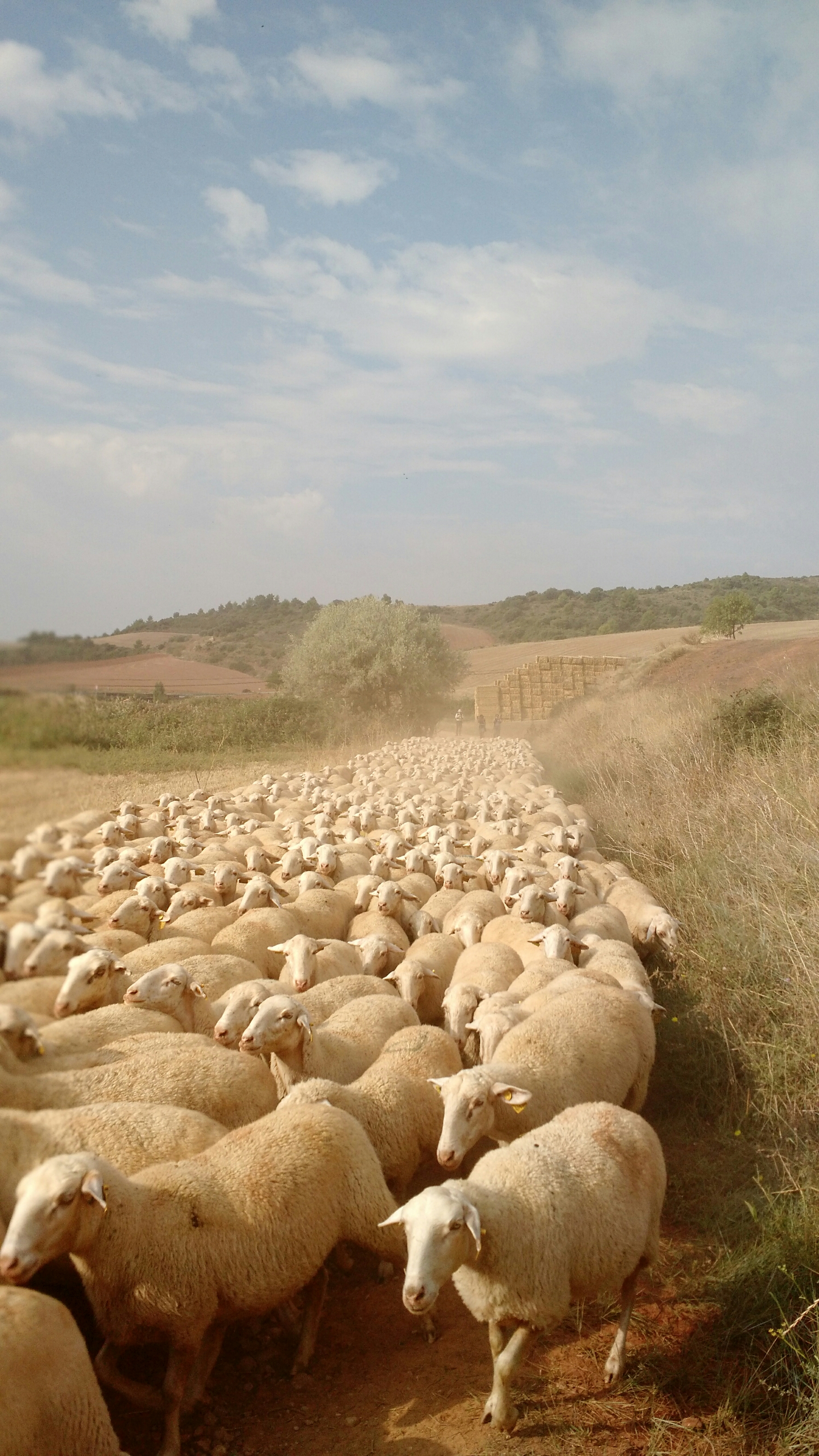 We pass a sheepherder as he and his dogs wrangle the sheep across the road. Eventually they cross Paul, Sue and Jerry’s path. As we walk an Oasis appears literally in the middle of nowhere. Some enterprising Spaniard has set up a rolling cafe at a crossroads of sorts 6KM from Los Arcos. We stop for an orange juice and to air out our feet as the skies have cleared.