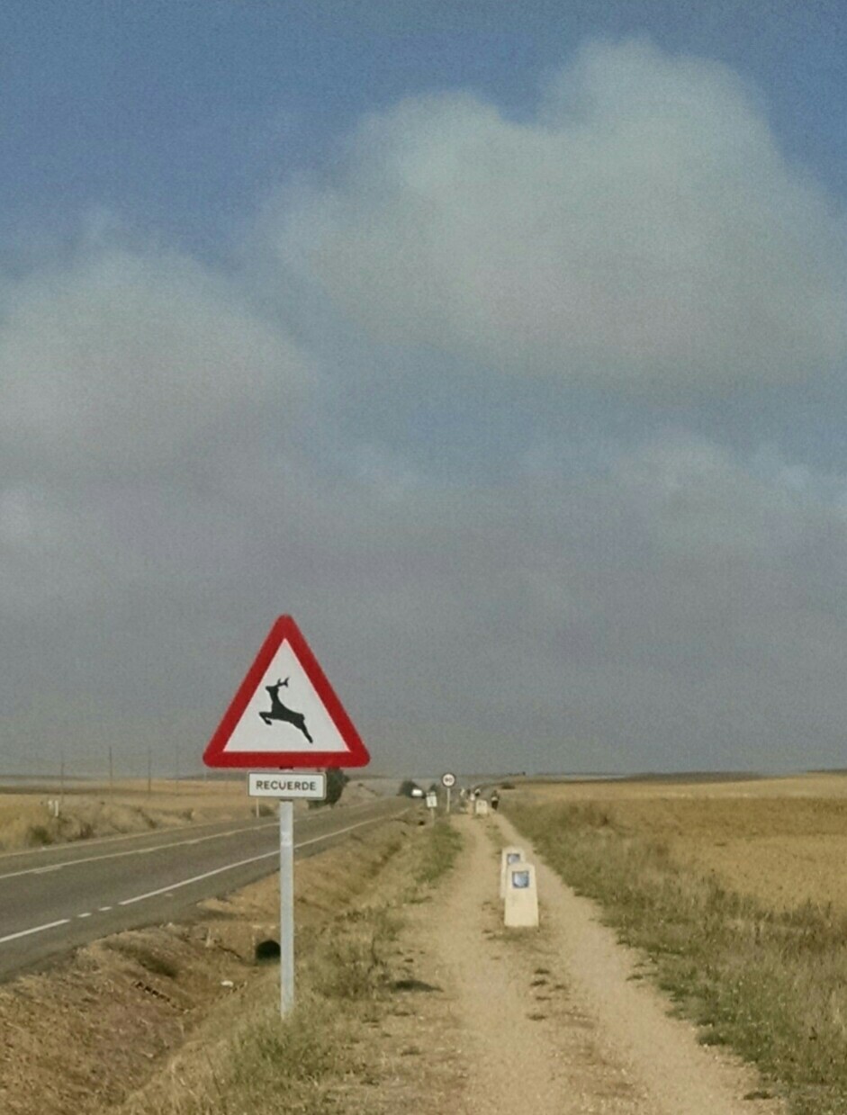Today’s walk seemed long and arduous, even though it was a mere 12.7 miles. It was devoid of much in the way of flora and fauna. If you have a lot of thinking to do, this would be the stretch (Burgos – Leon) to do it, or better yet, rent a bike and get through it in a more pleasant manner. We walk along a gravel trail that parallels a main highway, which makes sense seeing as the Camino was a main trade route connecting each city/village from the Atlantic to the Mediterranean. And so far we have not been to a city/village that St. James did not want to stop in, and I can see why. They each have their own charm and spirit.