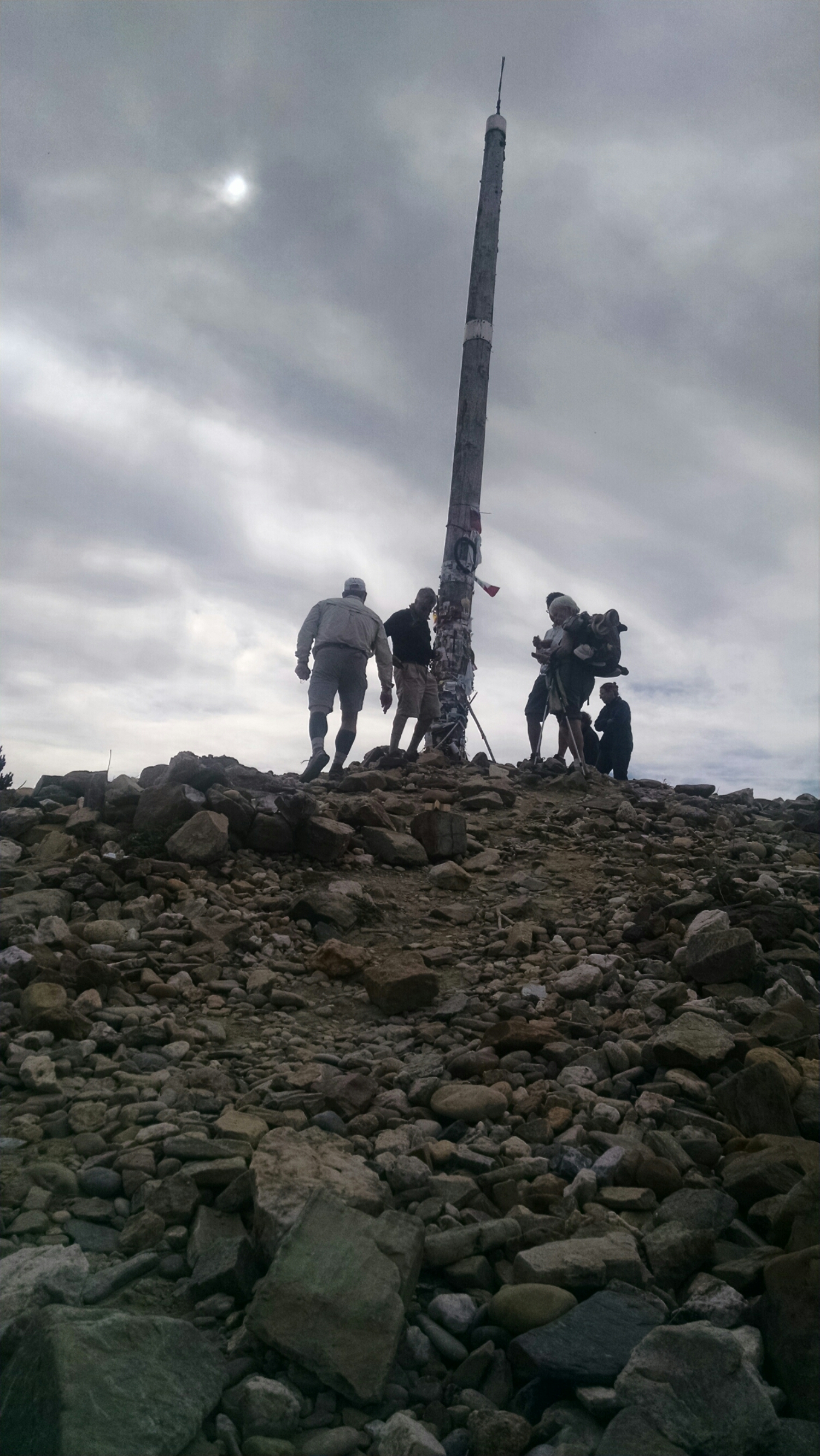 When we finally reach Cruz de Ferro it is nothing like we thought it would be. We knew that a road went up/by it, but we never thought the buses would park right next to it, or people would loiter atop it posing for pictures like they’ve climbed half dome or something. The vibe was far from serene or reverent. We rested a bit and moved on.