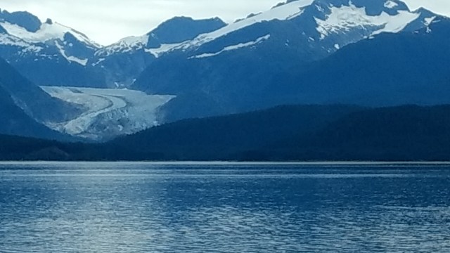 Even though the skies were cloud filled, they retained their moisture. The air was a warm 62°, and as expected it warmed up even more. The seas were glassy. It appeared to be a perfect day for a boat ride. One Alaskan, remarked as we all positioned our plastic recliners on the deck of the Solarium, “Finally, it’s summer!”. So far, Southeast Alaska has experienced a fairly wet summer, and this break in the weather is a welcome treat. When we stopped in Haines, a cook from the galley came out, pointed to the hills above, and asked, “Does anyone know what that is?”. Straining to see what he was talking about, I quickly realized he was talking about the heat emitting orange fire ball in the sky. ‘Oh, that?’, I responded, “It’s the sun. You can find it behind the clouds. It hangs in the blue sky’. The man laughed, “I can’t even remember how long it’s been. At least it’s not raining”.