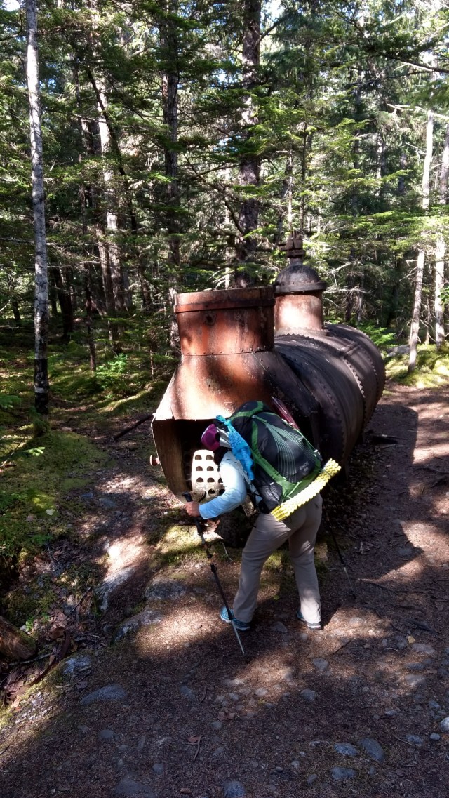 Besides a rotting stove, a steam broiler and saw blade, there were no structures, foundations, or crumbling chimneys leading one to believe or imagine that this place once was a city with several hotels, a post office and other amenities. There is however a well built and maintained foot path that loops you to “the other side of town” and back.