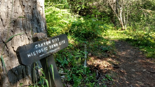 A half mile up the trail, and across a rickety suspension bridge was the now vacated and vegetatively overgrown site of Canyon City.