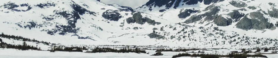 Part of our reason for calling it for the day, beside being practically exhausted was that we could not be confident that there would even be a patch of dry Terra firma in which to set up our “3-season” tents, if/when we descend from Island Pass. At this point we had viable options. Had we more energy (and at least two more hours of guaranteed daylight), as well as hearty “4-season” tents, snowshoes and shovels we would have continued. (Snowshoes would be worth their weight in gold at this point. We would be at the base of Donahue by now. The microspikes give you traction, but snowshoes would have given us loft…and traction.). Thus common sense gave way to ego and that other little voice that always says to us, “Let’s just go 2 more miles.”