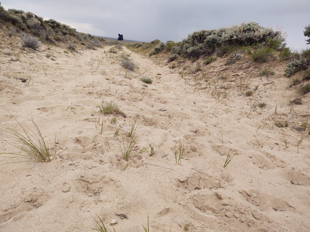 Extremely soft sand! Like going to ocean, beach sand. How ironic is it that we find ourselves in Wyoming walking for miles in soft sand. This is when we realized what “stroller guy” meant. And this is when we gained an even greater appreciation for his experience and grit.