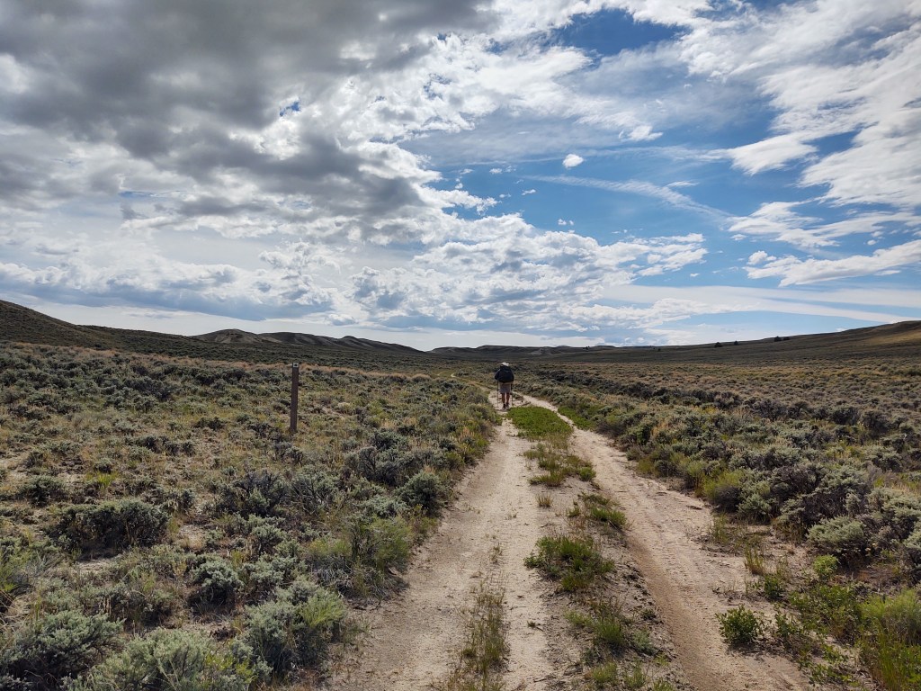 We stuck to our plan. Up until we started to break from our second 4 mile break, we hadn’t seen another soul. With that said, we mostly took our breaks smack dab in the middle of the trail. Never did we think that a truck would come barreling down the road. Likewise, never did the occupants of said truck ever think they would find people “lounging” in the middle of the road. This led to a pleasant conversation, as they were scouting the area for their pronghorn hunt in September. They asked if we had sufficient water, which we did, and we both headed in opposite directions.