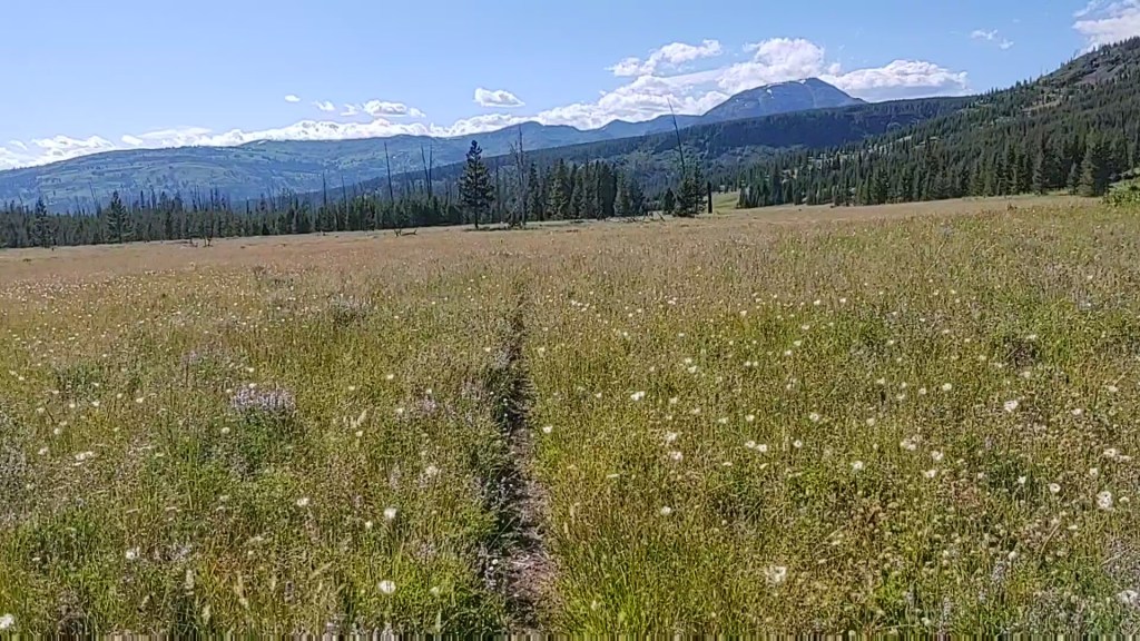 Flowered trail turned to wooded, then into a meadow of tall grass before we reached our turn-off to our campsite, 2/10ths of a mile off the CDT.