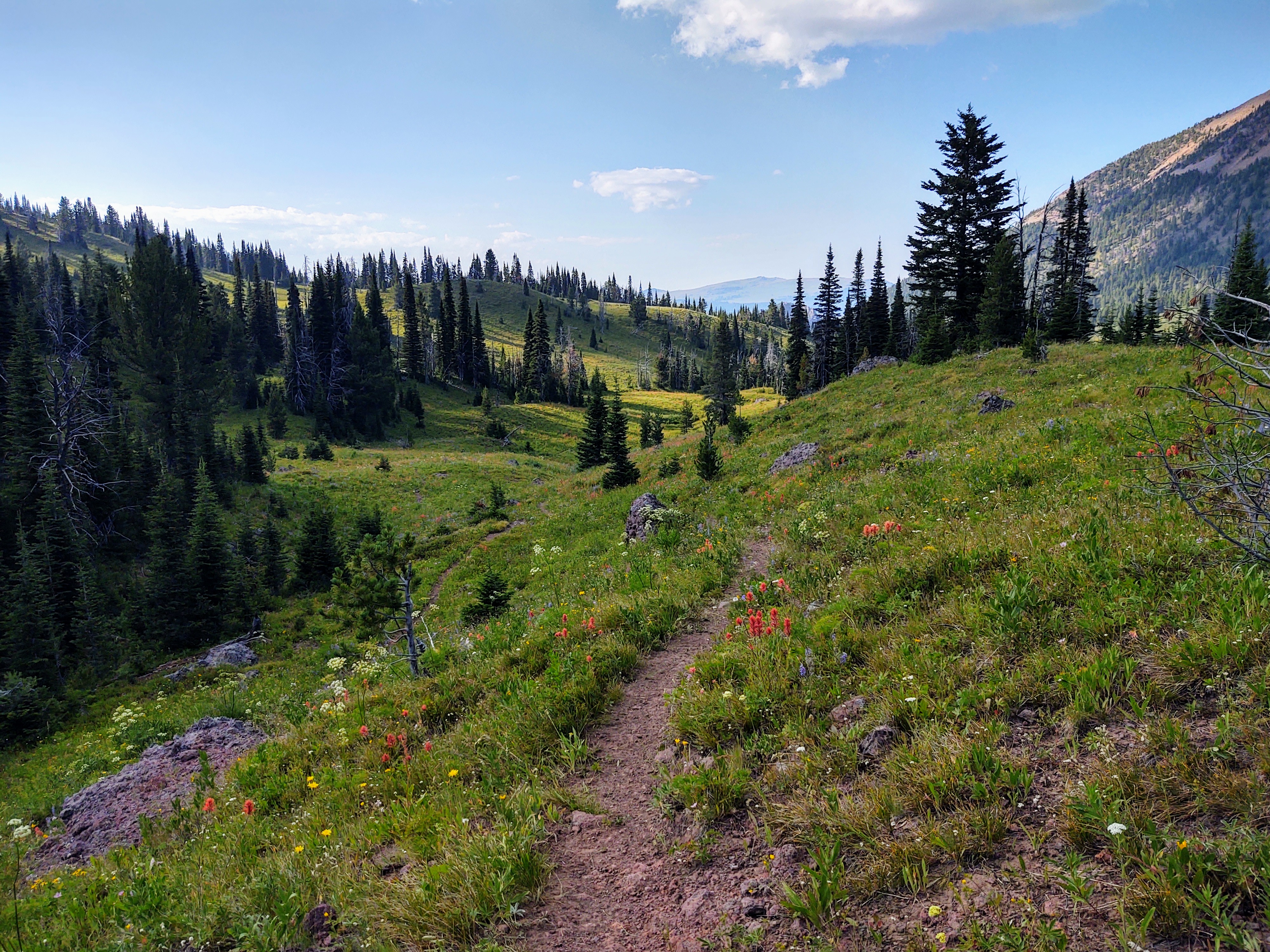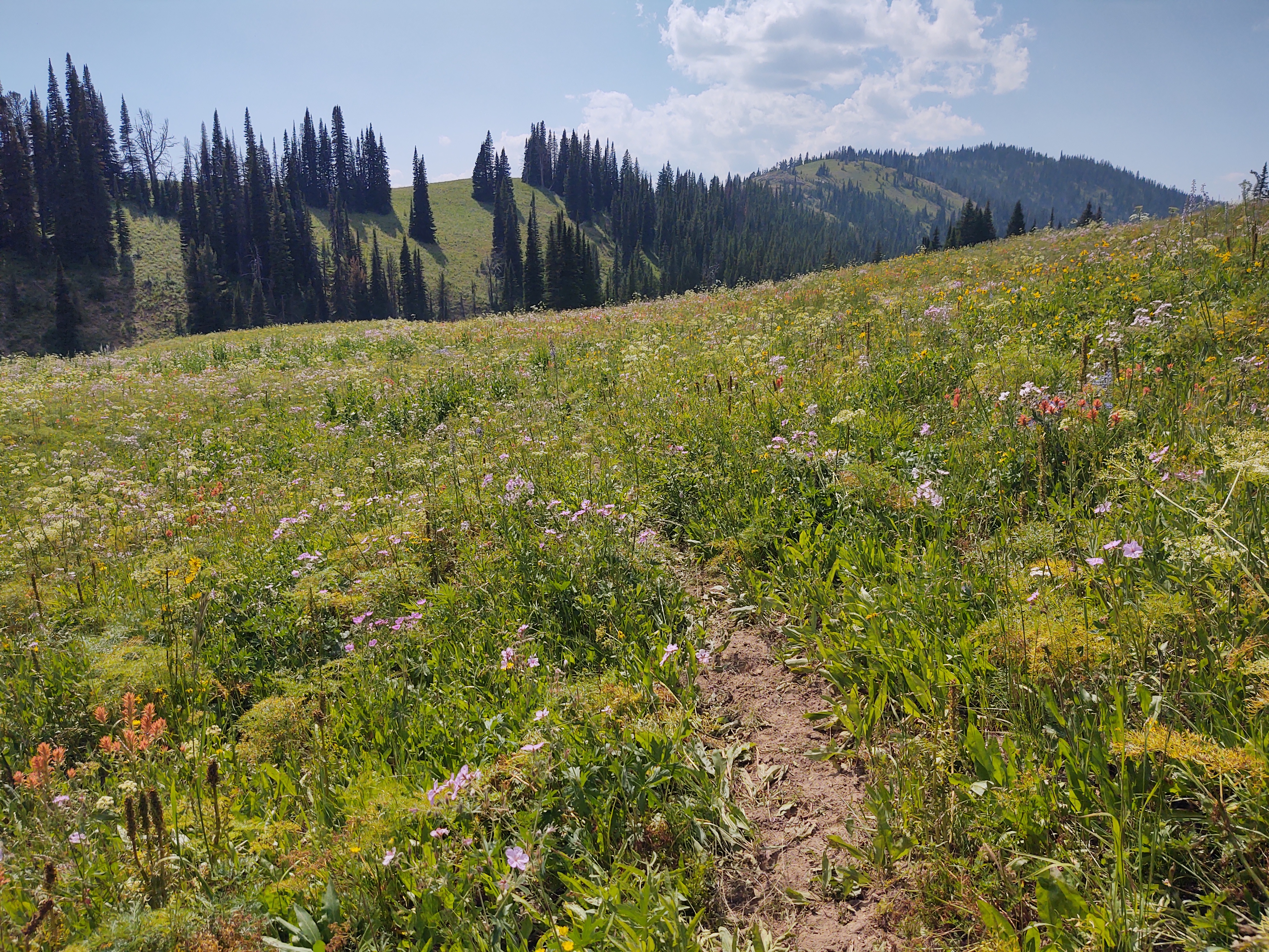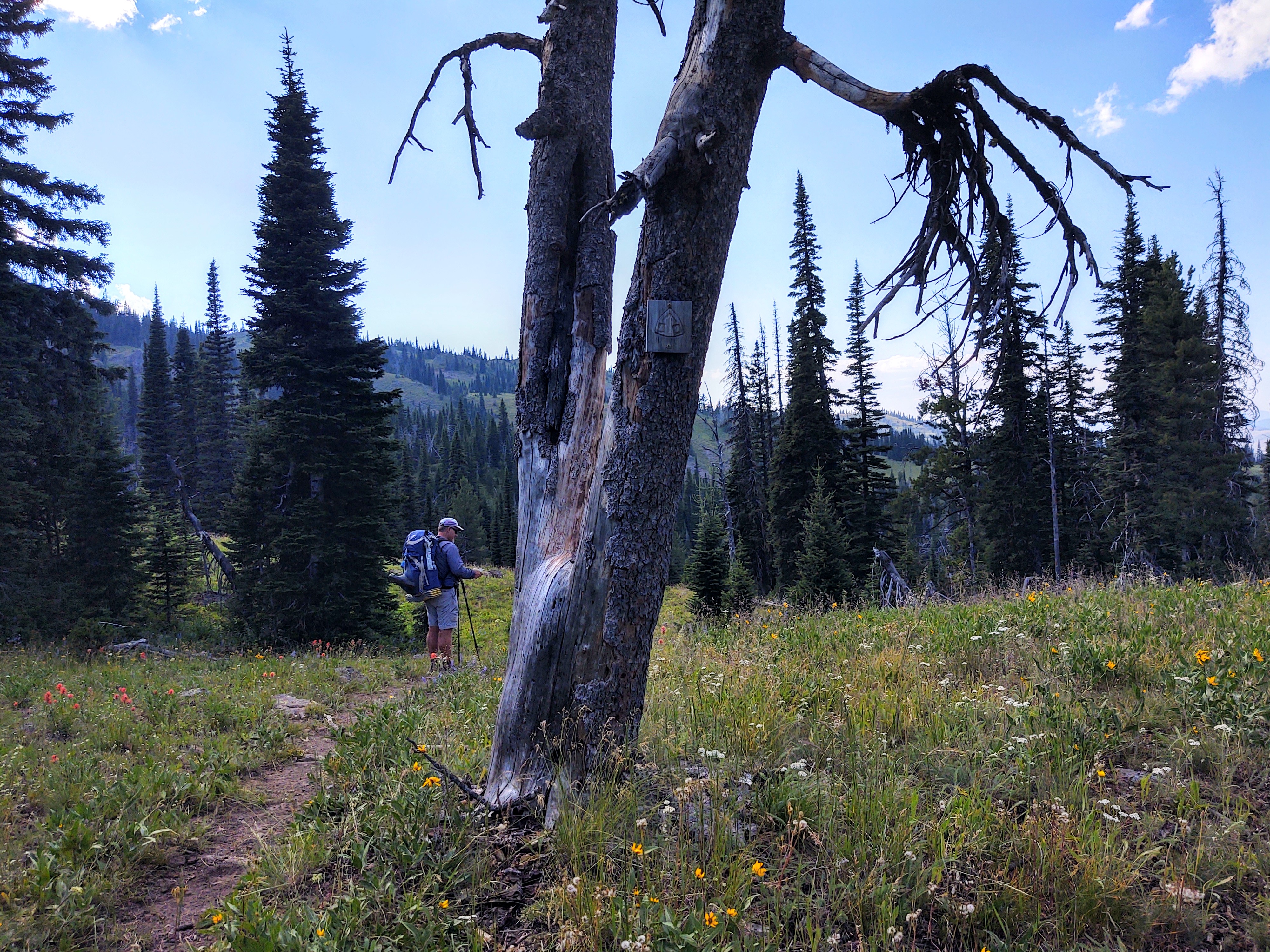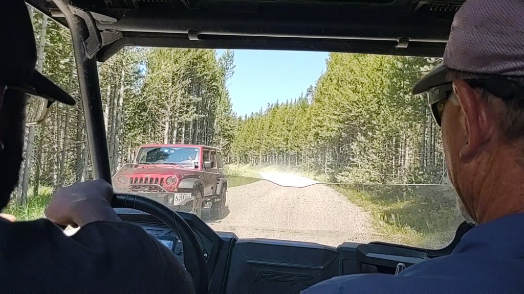 Thanks to Issac and Justin at High Mountain Adventures in Island Park (next to the Sawtelle Mountain Resort), who helped us out big time. While the Mack’s Inn Cut-Off is 32.6 miles in total, the next 10 miles for us was to be on the Sawtell Peak Rd, where it the mercifully turns off onto a trail, that supposedly turns into a 3.5 mile bushwhack, that intersects with (NOBO) mile 2076.2 of the CDT. In a text we received from Google the day before, he wrote, “Made it up the road out of town. Hitch it if you can. Extremely busy with idiots on 4 wheelers and the dust is oppressive. Also super long uphill”. We decided to take Google’s advice.