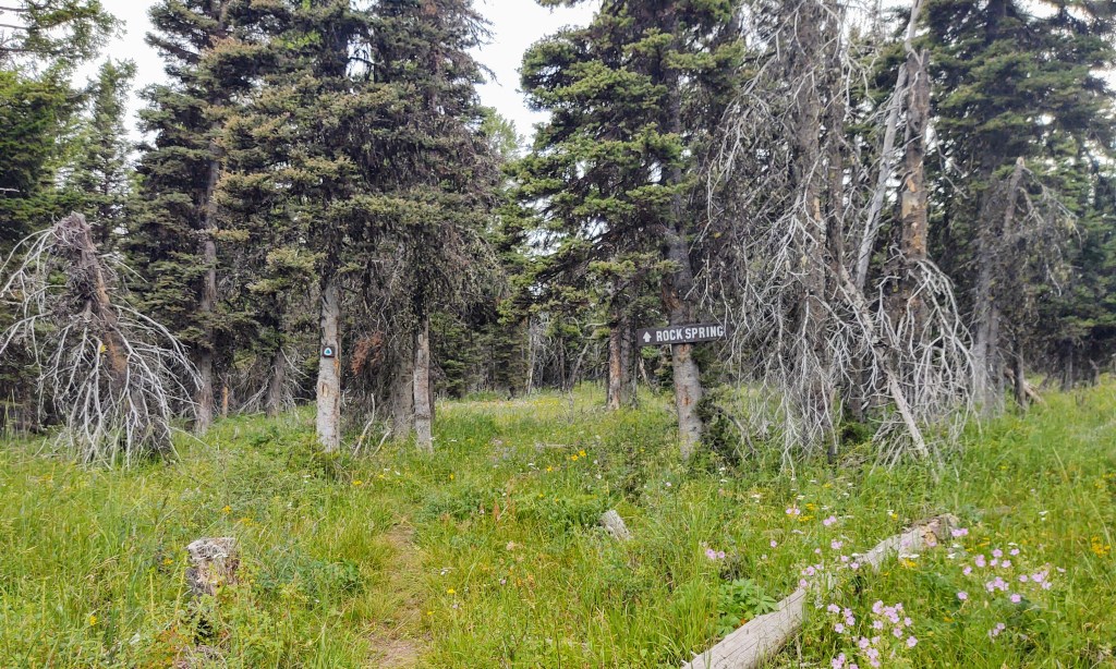 Throughout the day we walked the spine of the Idaho/Montana border, trying to see, if any, what defined either state. Behind us, the skies began to darken. Rain was coming…again. We however, felt confident that based upon our pace and the relative ease of the trail that we would make it to Rock Spring (8,957 ft) well before the rain, if at all, began to fall.
