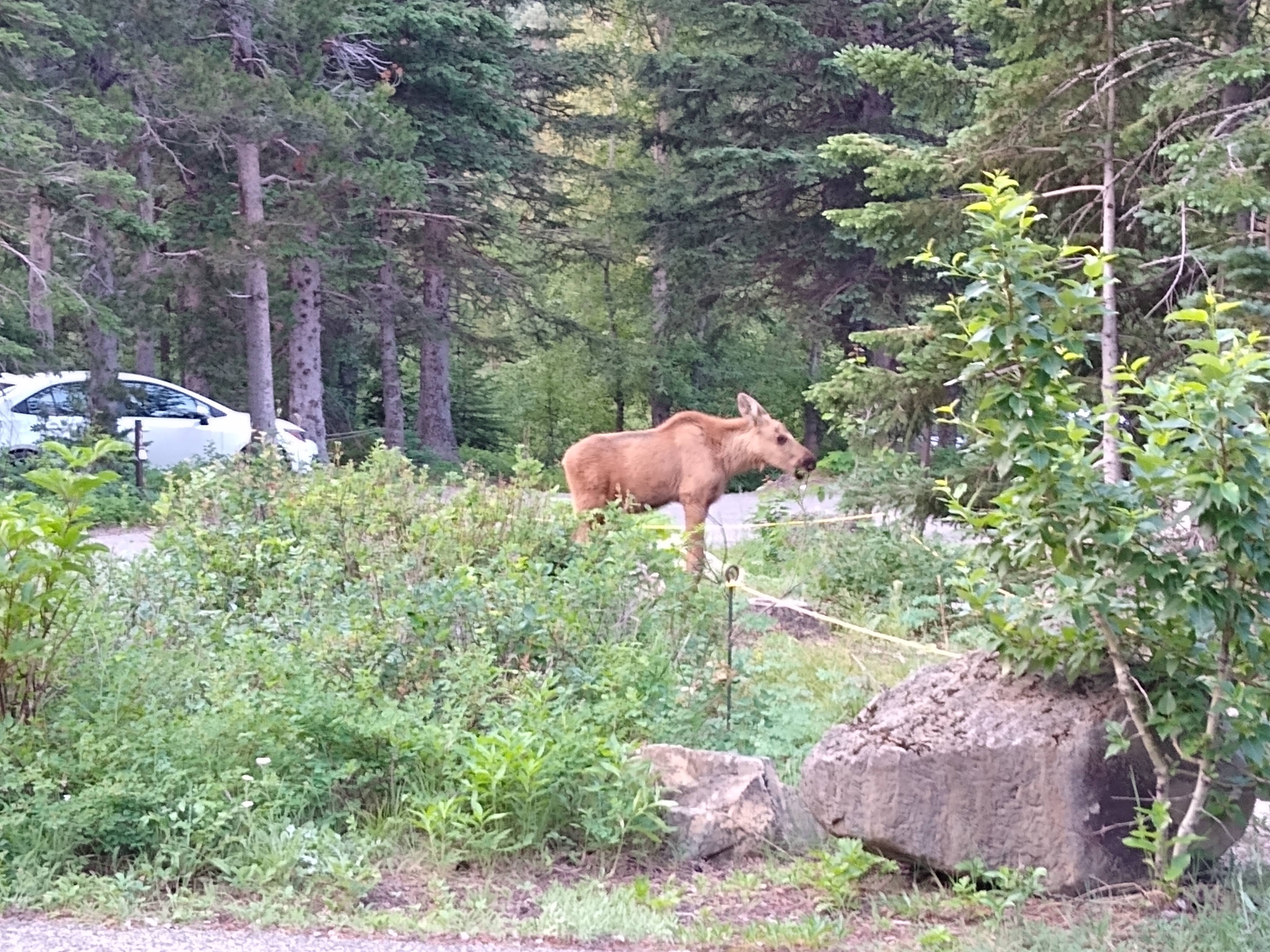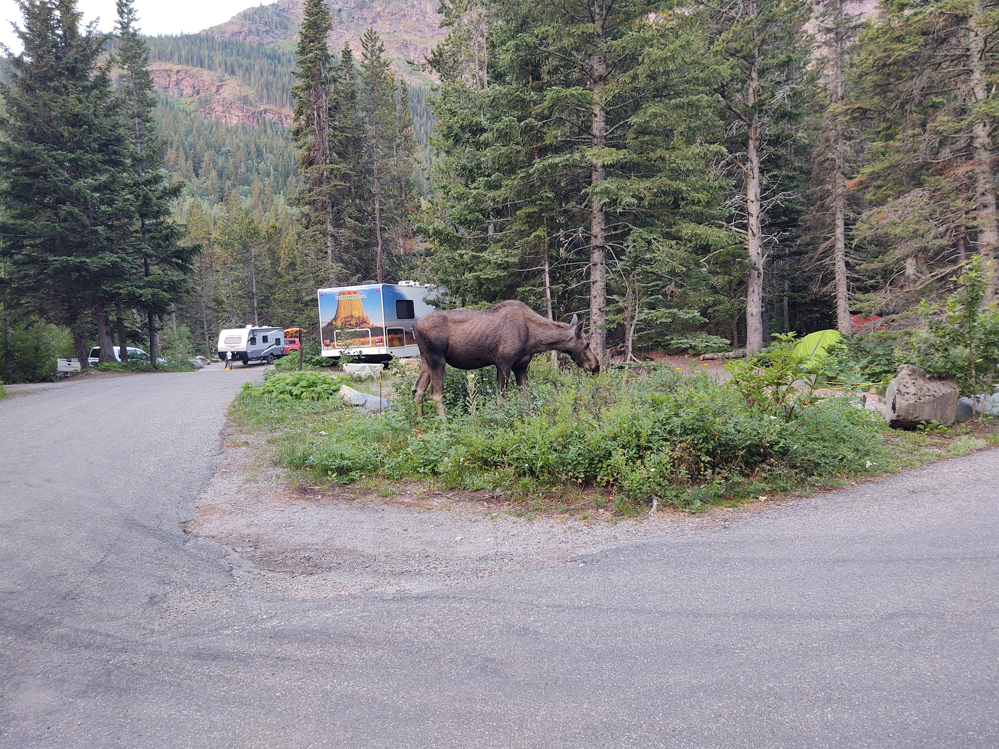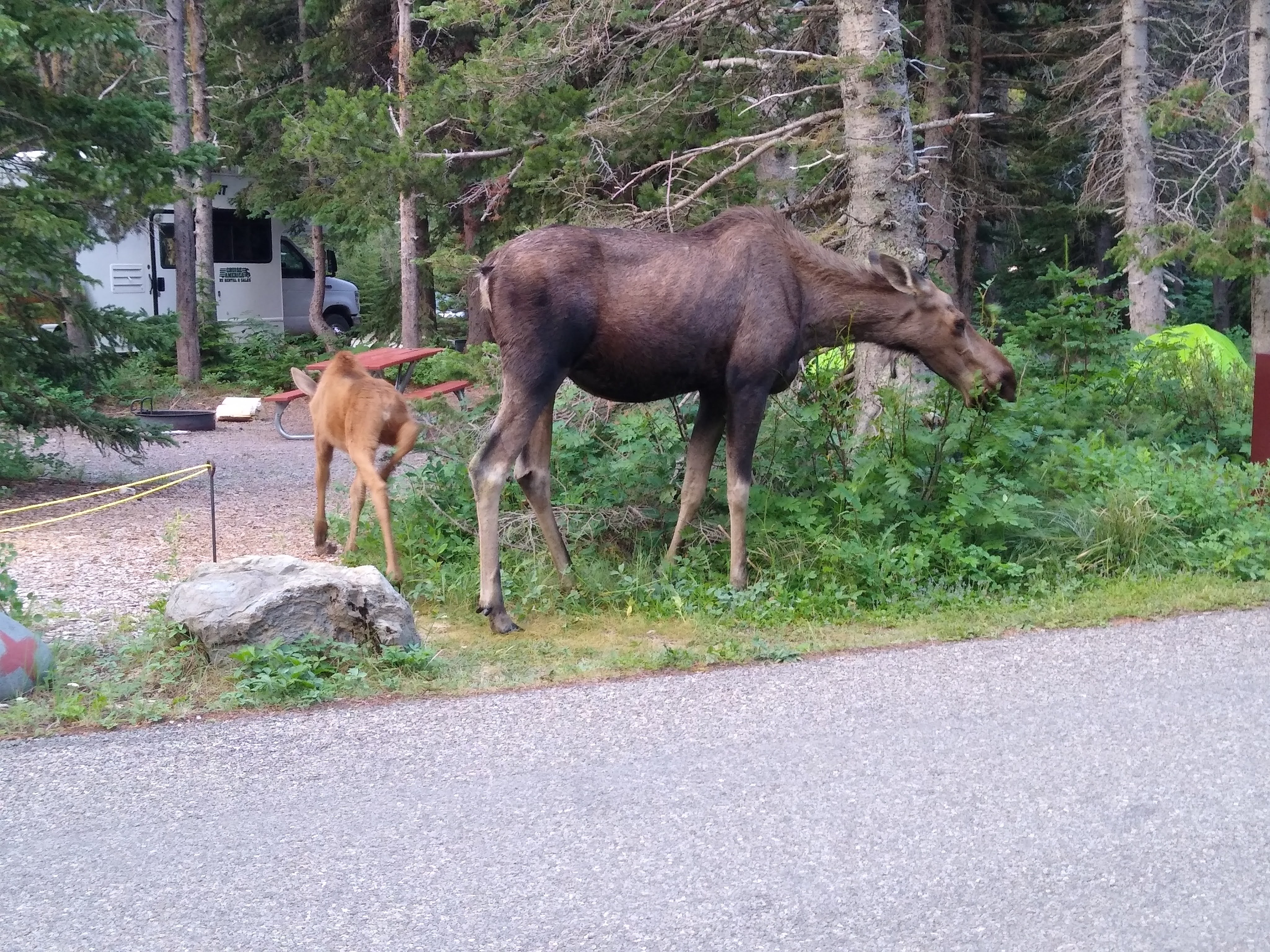 We were up early, but so was the wildlife. As if on que, a cow moose and her calf wandered calmly through the campground munching on the vegetation, directly across from us. Sometimes it pays to get up early.