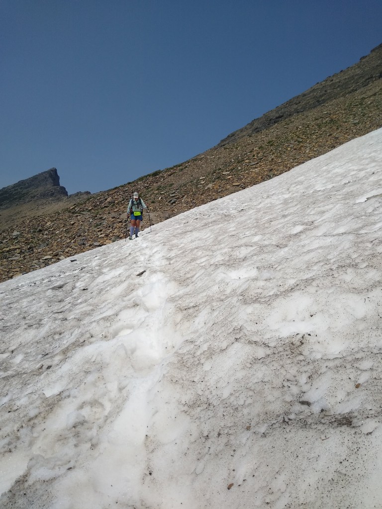 On our descent from the pass and toward the Going to the Sun road, we had our first (and so far only) snowy traverse of the CDT.