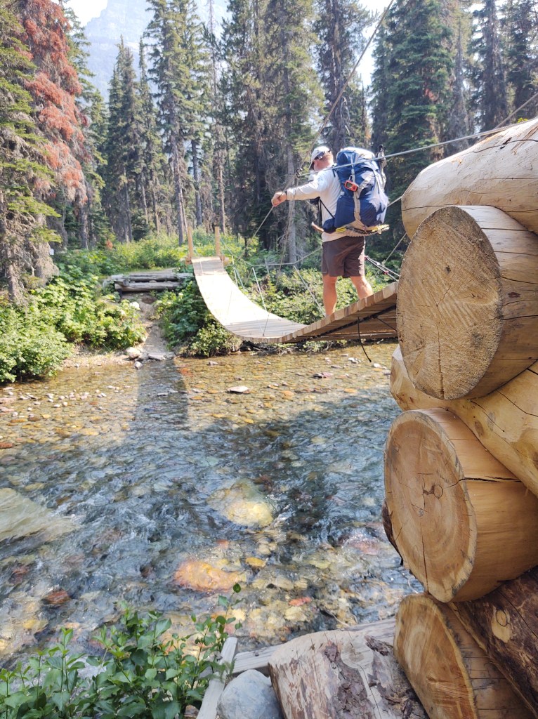After a wobbly bridge crossing, and a quick rinse in the very chilly, yet invigorating creek/river we called it a day. But, not after a group of six backpackers (not thru-hikers) totally buggered up our food hang lines. We decided that we would NOT be quiet in the morning.