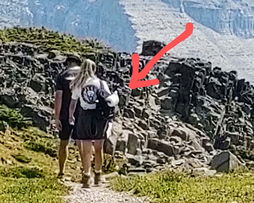 Once to the top of Piegan Pass (7574 ft), we ate lunch and took a well earned nap. I awoke just in time to see one of the most unique methods of TP carry ever.