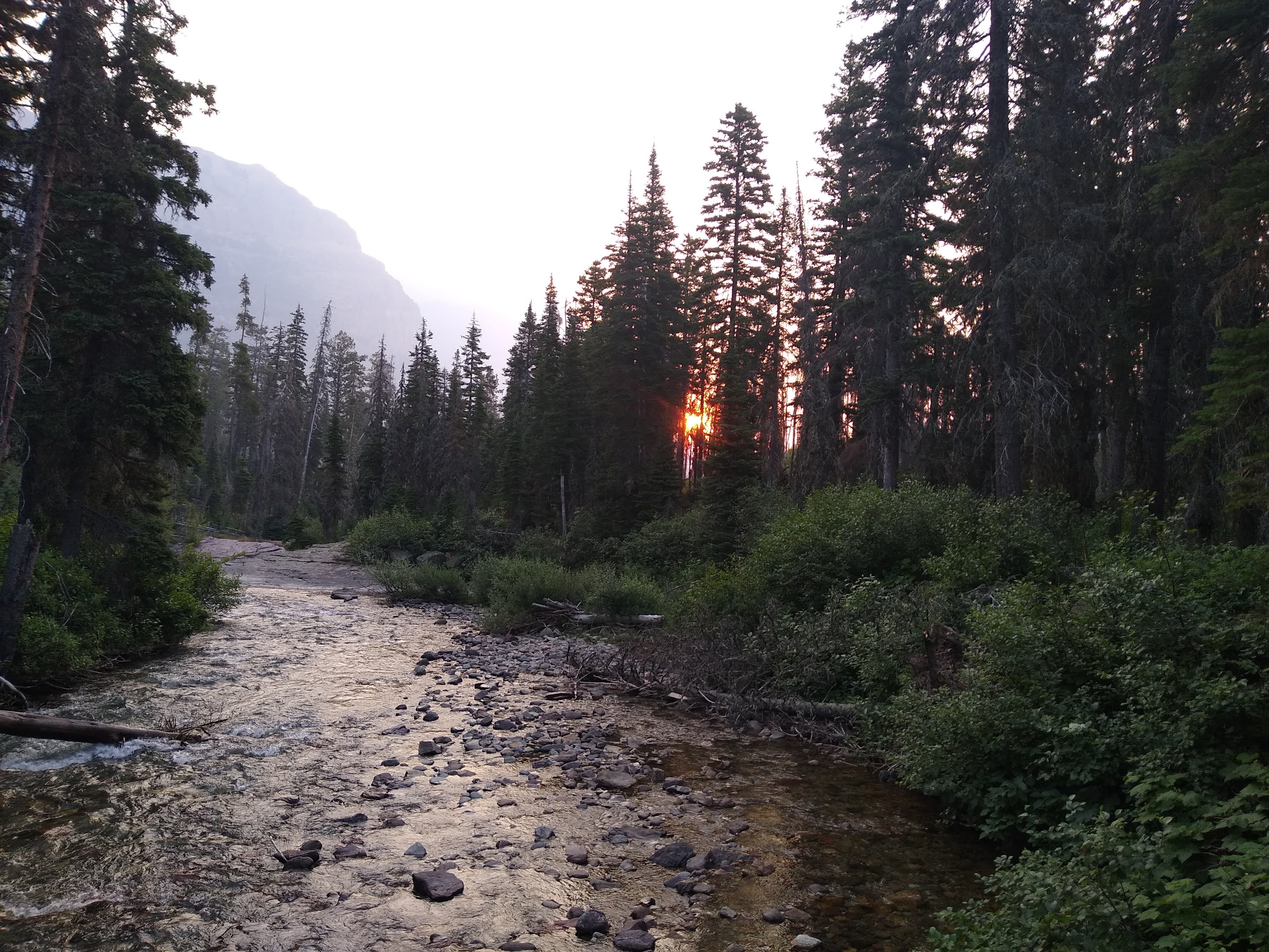 So enough about “food” and onto the trail. The morning’s sunrise was accompanied by a now noticable haze and a faint odor of smoke in the air.