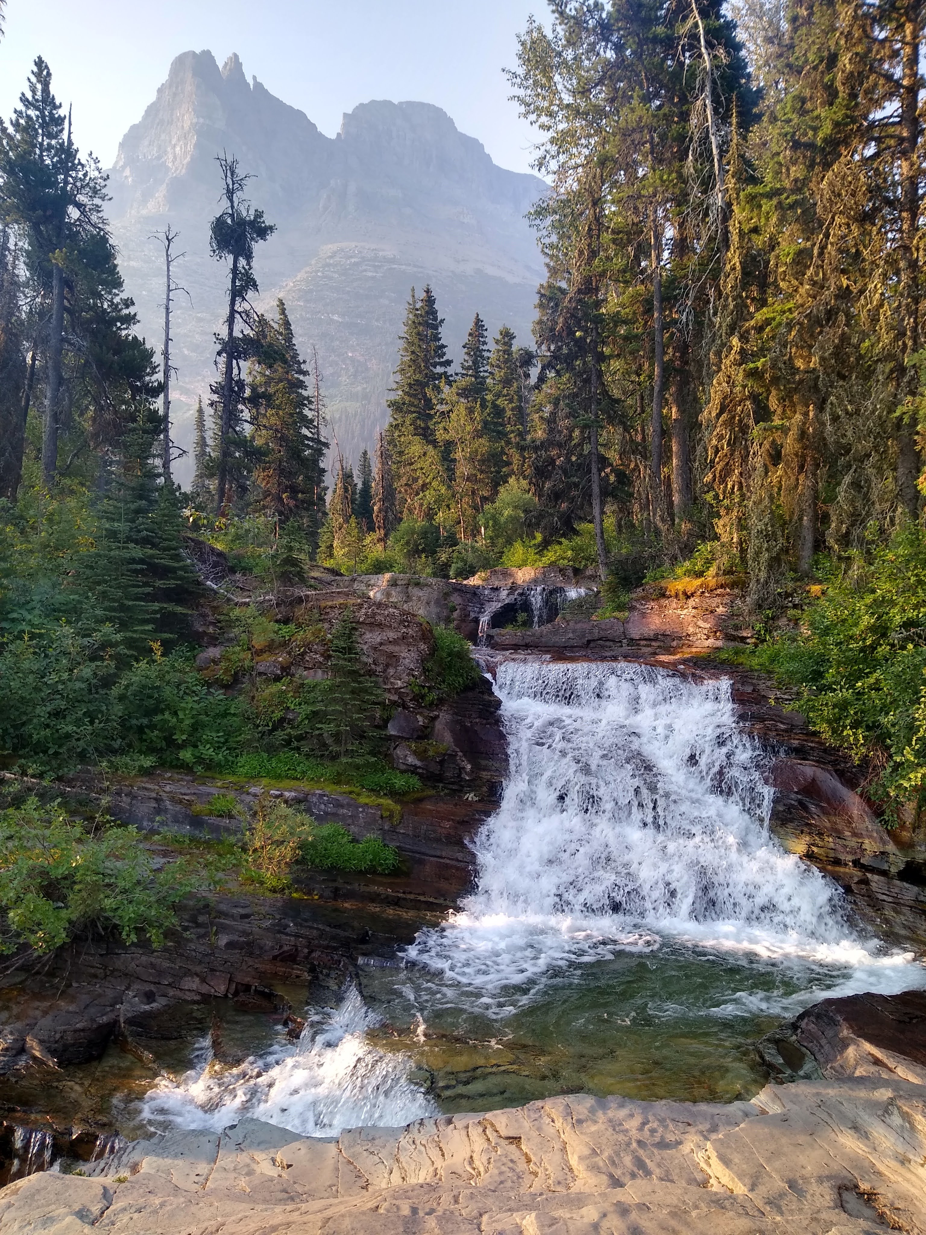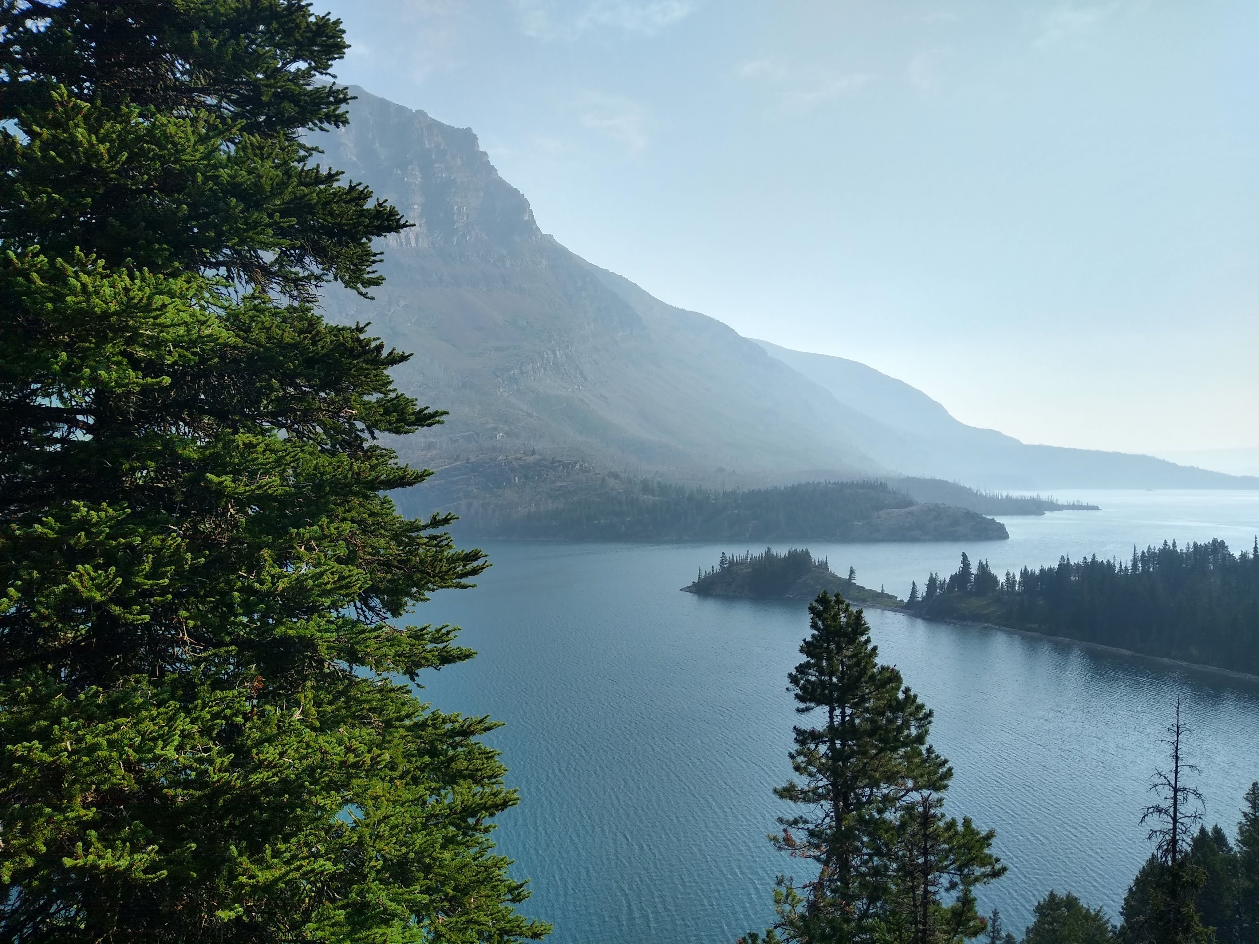 We took our time and strolled along the trail marveling at the early morning beauty of St. Mary Lake, the second largest lake in GNP, measuring a whopping 7 miles in length and 300 feet in depth. The Going-to-the-Sun-Road runs her North side, while we walked 30meters above her Southern shoreline.