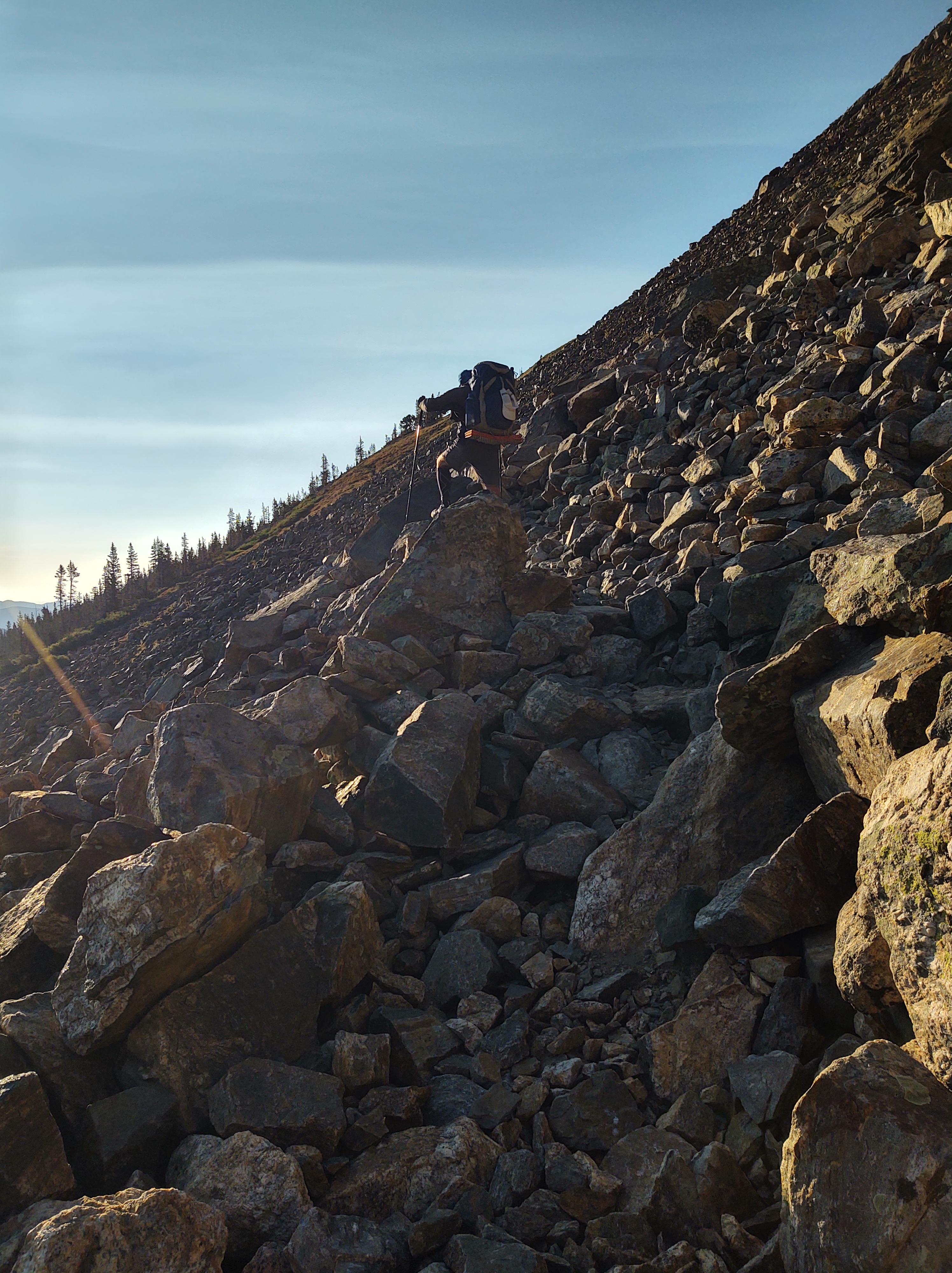 Today was to be the beginning of numerous 13,000 ft ascents/travereses over the next couple hundred miles. First on the menu was Big James Peak at 13309 ft. We would climb from 11400 ft, a nearly 2,000 ft difference…again.