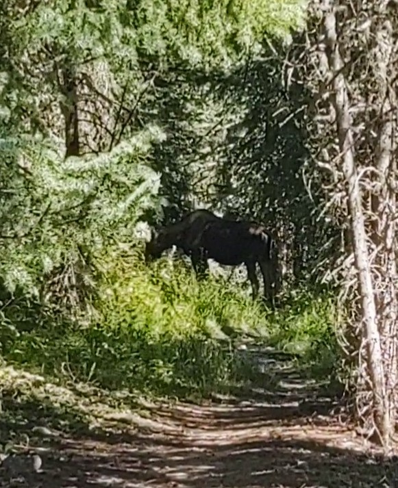 A cow moose was feeding along the trail, and couldn’t be bothered with getting off trail for us to continue.
