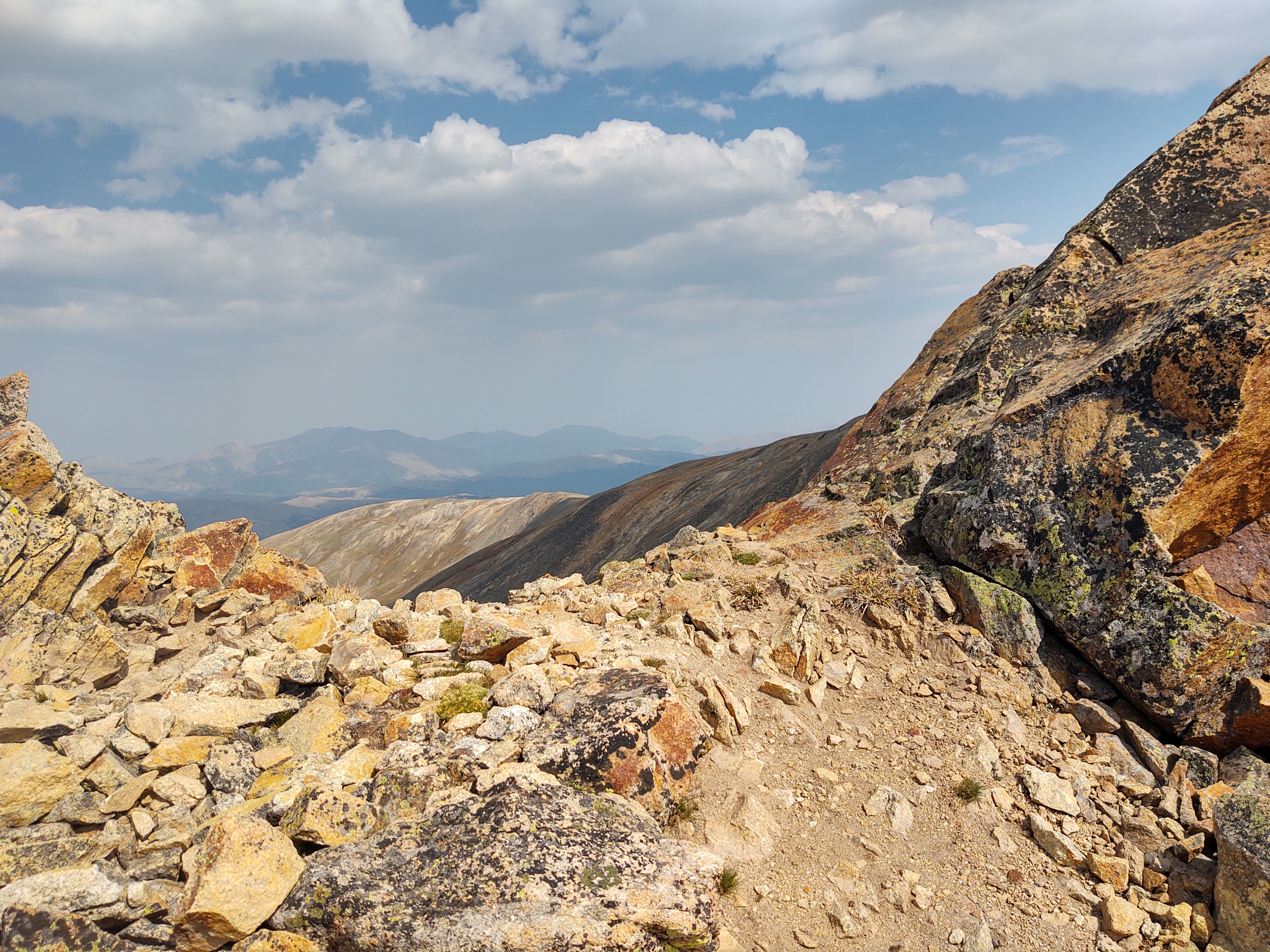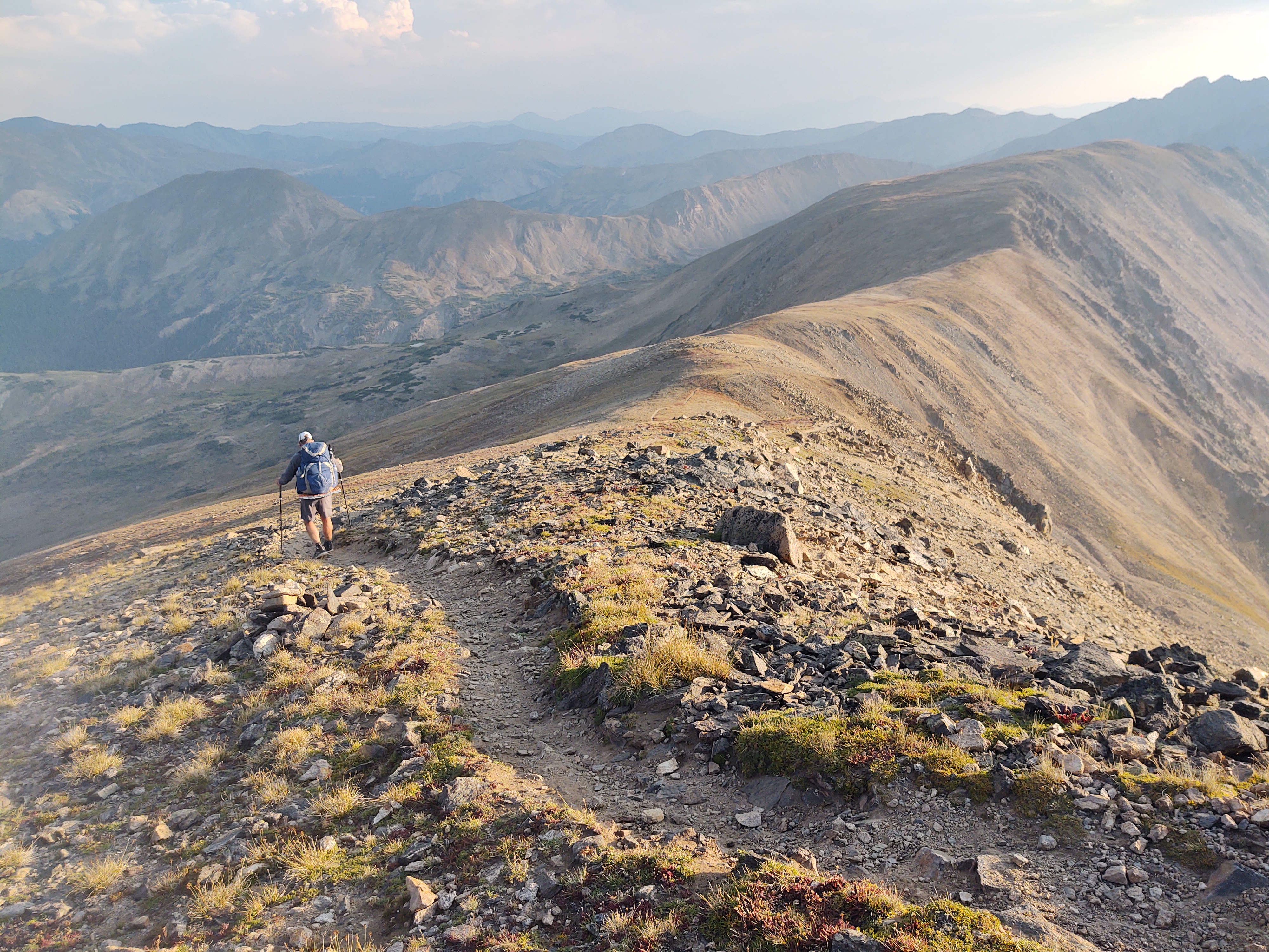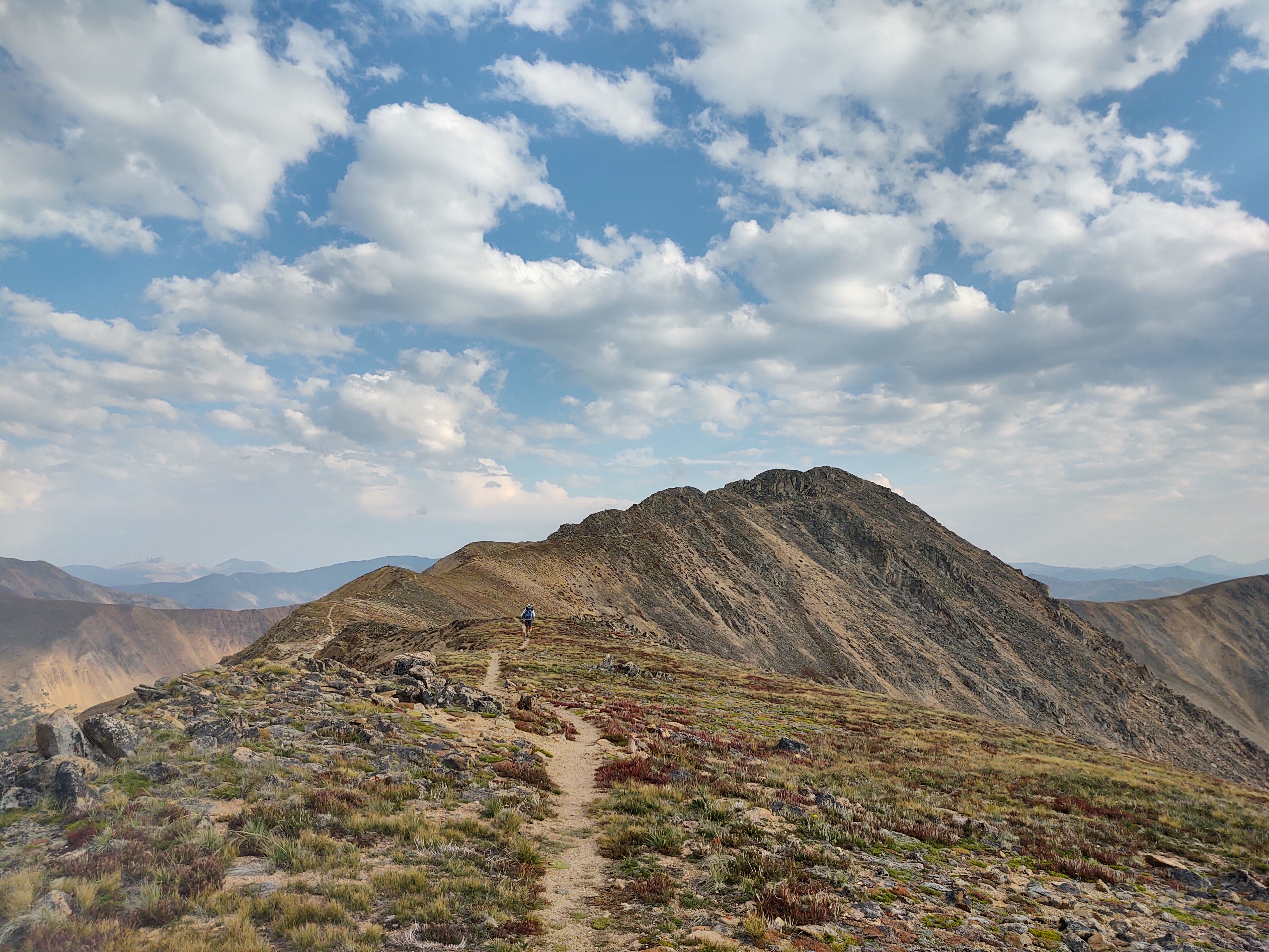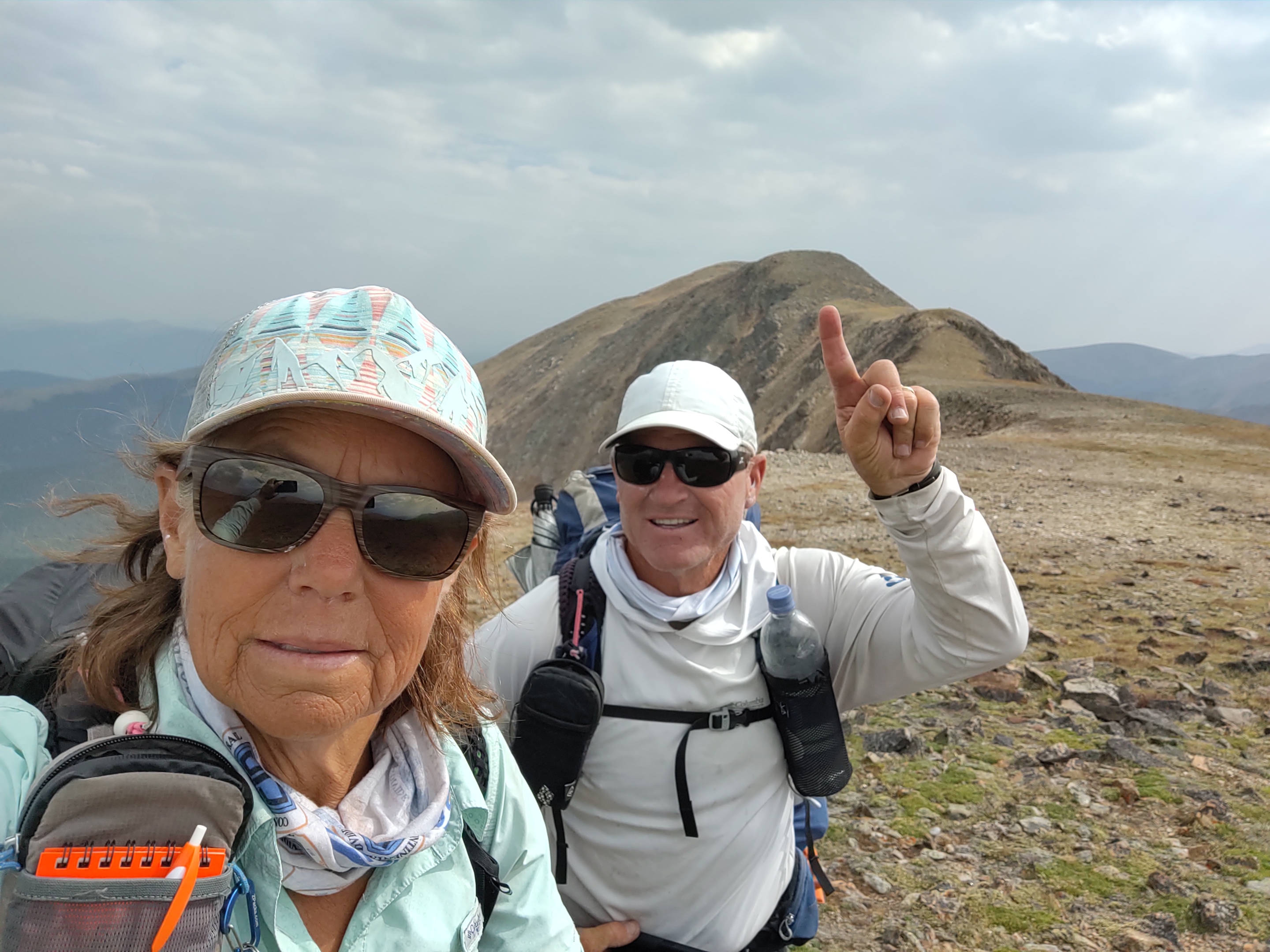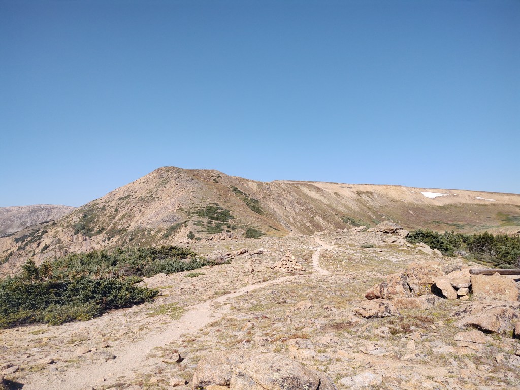 Plenty of daylight left and not a breath of wind, the trail continued from Gray’s and across to Edward’s Peak (13856 ft). It took us 2.5 hrs to go 1.5 miles to make our way to the peak. No one told us about Edward’s, even though we had read comments about Edward’s on our Guthook app. Something about it being “dangerous” had us confused, as it was lower than Gray’s, and was on/along the redline of the CDT.