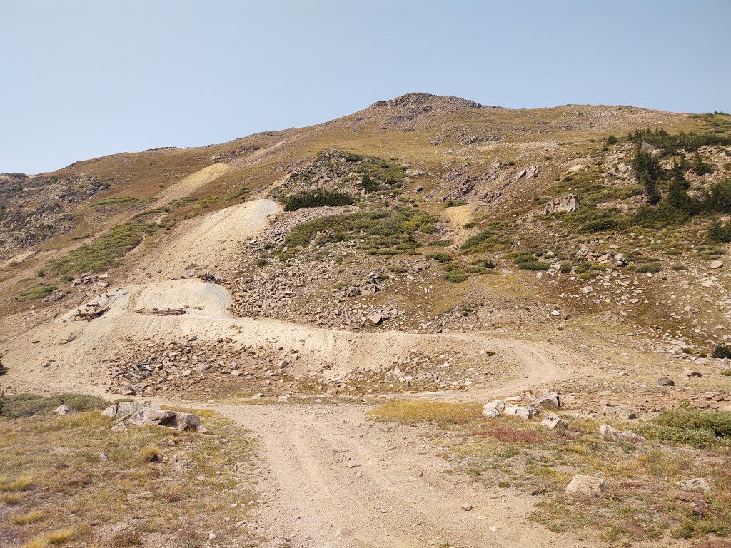 The bike path ended at the base of the dirt road approach to Gray’s Peak.